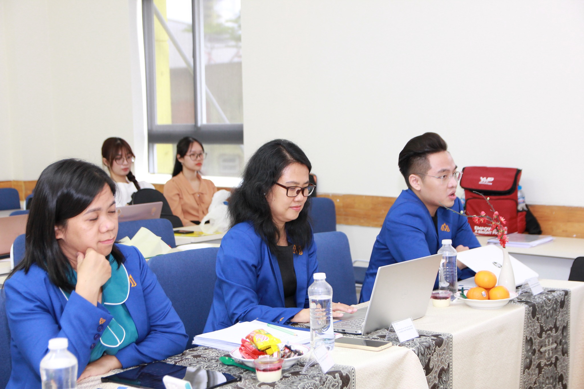Hội đồng tham gia đánh giá là các thầy cô giảng viên cơ hữu của Khoa giàu kinh nghiệm, chuyên môn và có học vị cao. Hội đồng đã làm việc nghiêm túc và đưa ra những nhận xét góp ý về kỹ năng thuyết trình, kỹ năng giao tiếp, nội dung đợt thực tập, chuyên môn, thái độ,… của sinh viên. Hy vọng những lời khuyên, góp ý chân thành từ các thầy cô sẽ là hành trang bổ ích cho các bạn trong hành trình sắp tới.