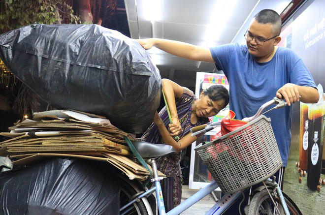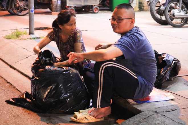 Cả đêm theo chân hai mẹ con, chúng tôi chưa lúc nào thấy mẹ con Duy ngơi tay, ngơi chân. Hai chiếc xe đạp cùng hai con người di chuyển hết đường này đến đường khác, chốc chốc lại lọt thỏm cạnh các đống rác bay mùi để lượm những gì còn có thể tận dụng. Mỗi đêm đi như vậy, hai mẹ con kiếm được hơn trăm ngàn đồng…