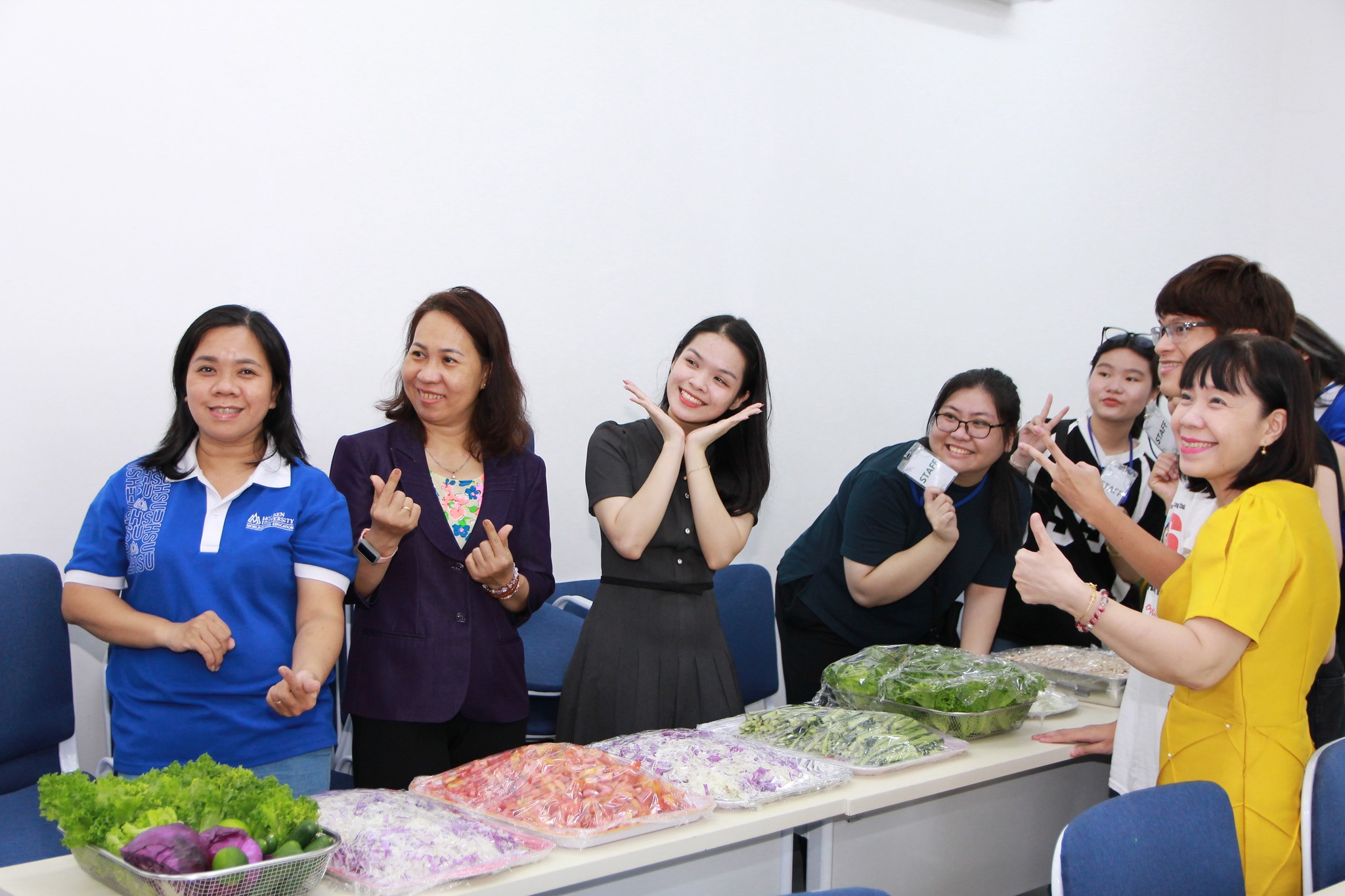 Các bạn HS-SV đã được tìm hiểu về lịch sử, thành phần, và cách làm của 5 loại bánh, gồm S’Mores, Buffalo Wings, Tacos, Pumpkin Pies, Gumbo cũng như thể hiện kiến thức sâu rộng khi tham gia minigame tìm hiểu về nước Mỹ. Các bạn cũng rất hào hứng tự tay làm và thưởng thức những chiếc bánh Tacos vô cùng thơm ngon bổ dưỡng.