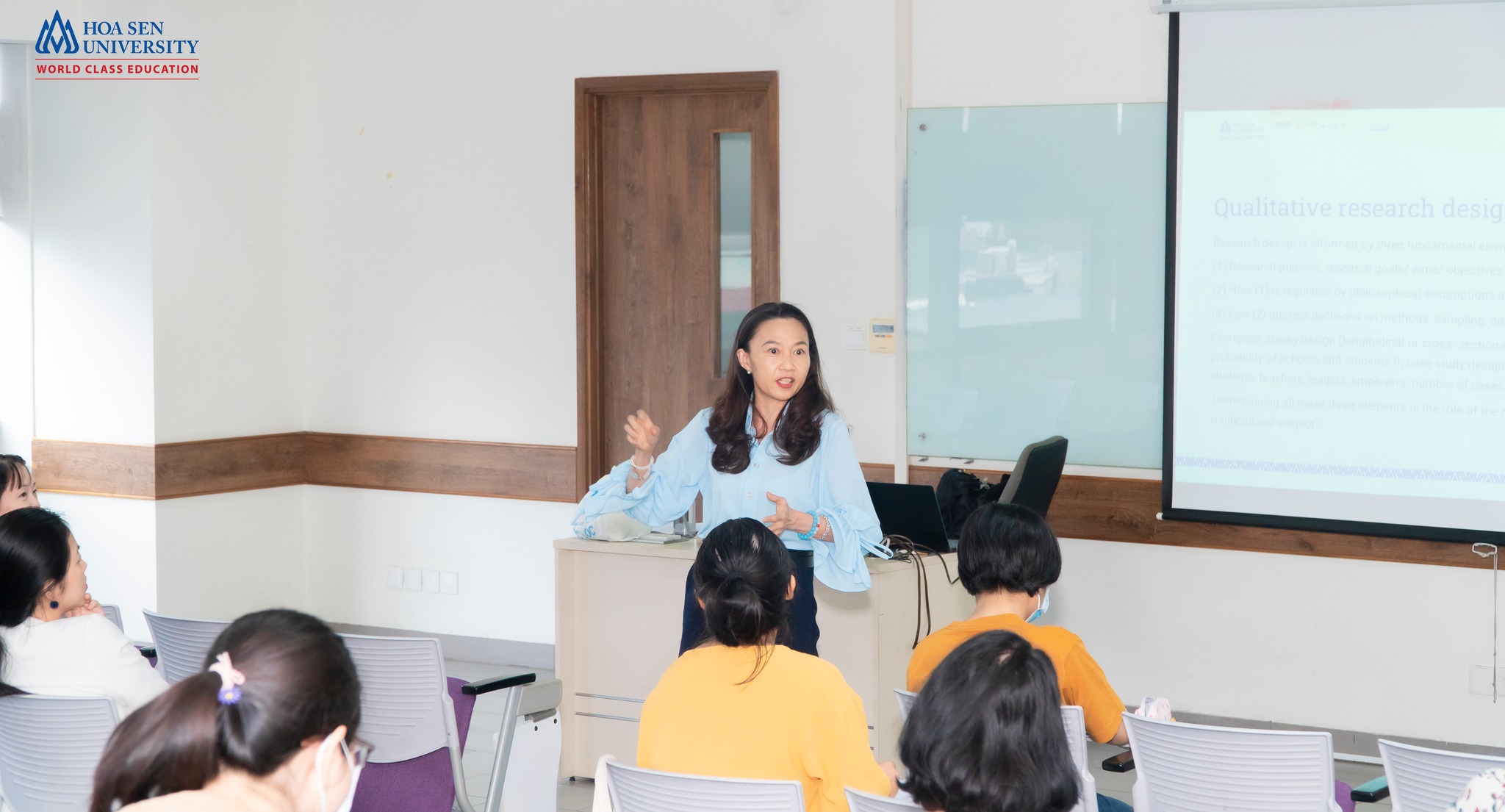 Tại buổi hội thảo, Tiến Sĩ Bùi Yến Ngọc và Tiến Sĩ Lê Đào Thanh Bình An đã trình bày một số thông tin về Thiết kế nghiên cứu định tính và Xây dựng câu hỏi nghiên cứu, cũng như những chia sẻ về luận văn tiến sĩ của Tiến Sĩ Bùi Yến Ngọc.
