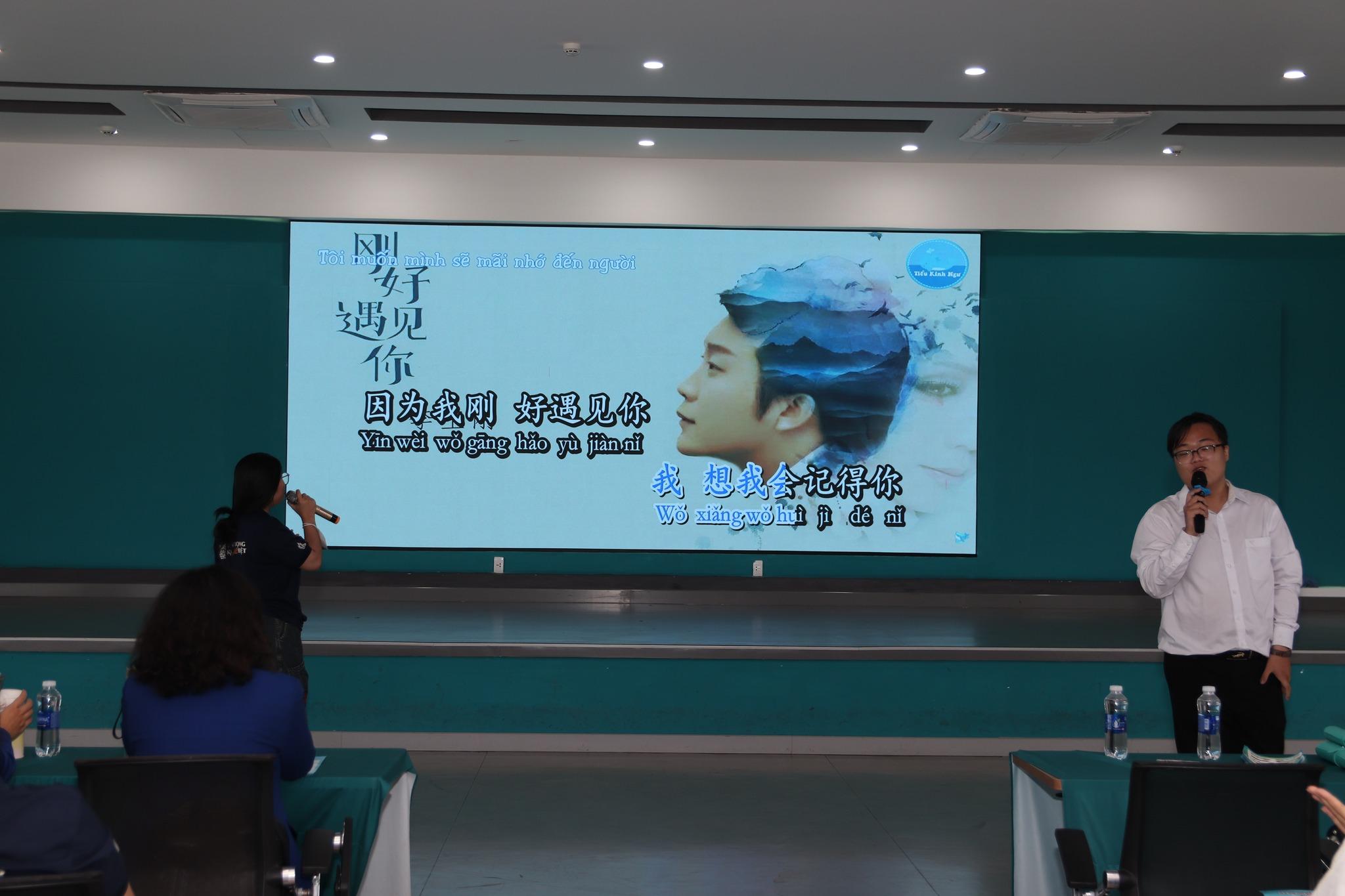 Chuyến đi còn trở nên ý nghĩa hơn với hoạt động giao lưu văn nghệ, chụp hình lưu niệm, bữa trưa thân mật và trao tặng liễn thư pháp “鸿运昌隆” như một lời chúc cho sự hợp tác bền vững giữa Nhà trường và doanh nghiệp.