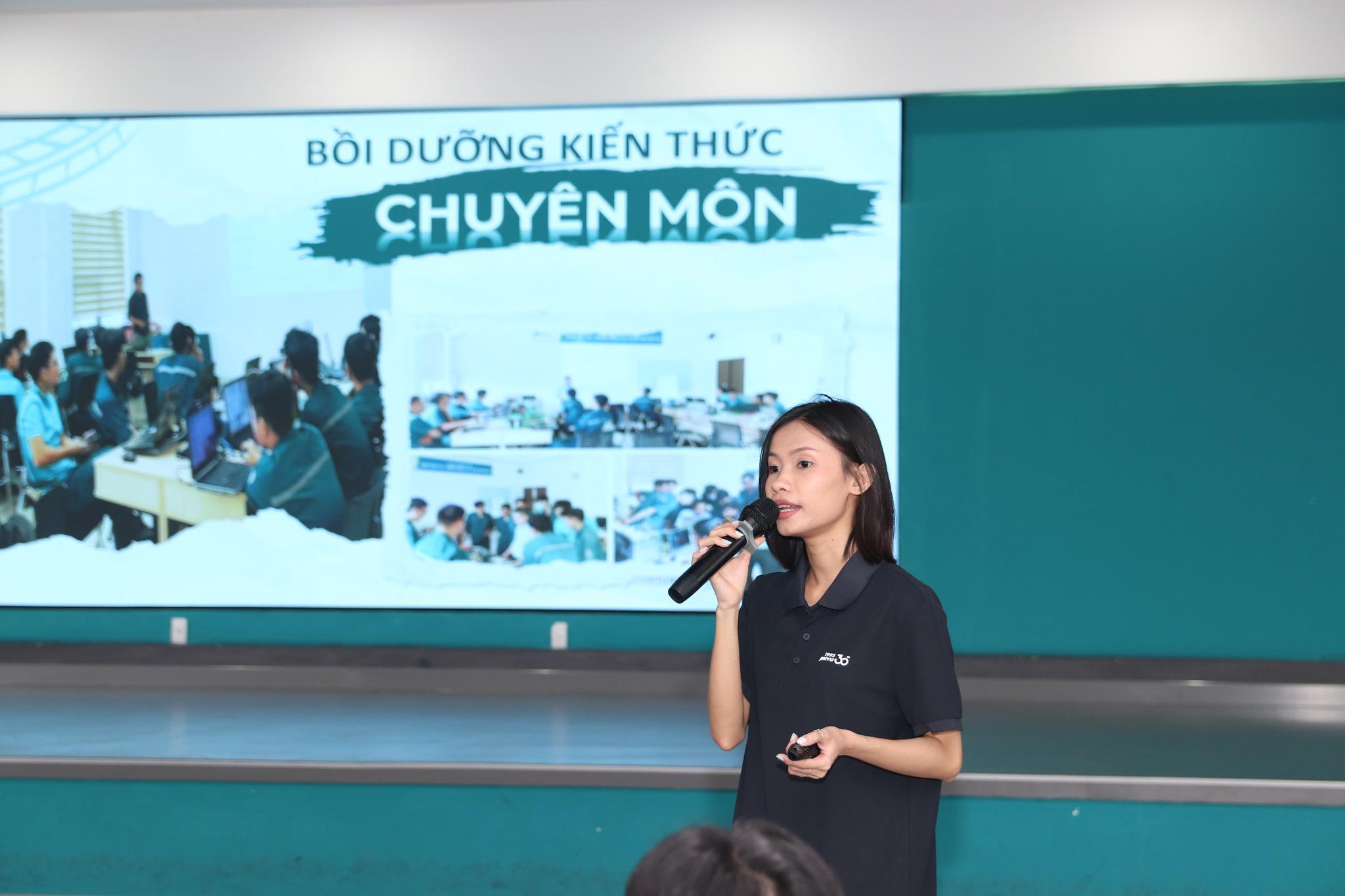 Tại Jinyu, sinh viên đã được tham quan xưởng sản xuất, tìm hiểu quy trình vận hành và quản lý dây chuyền sản xuất hiện đại, đồng thời lắng nghe đại diện doanh nghiệp chia sẻ về văn hóa công ty, môi trường làm việc và cơ hội nghề nghiệp. Những cuộc trao đổi cởi mở, câu hỏi thực tế và sự chia sẻ chân thành đã giúp các bạn hiểu rõ hơn mối liên hệ giữa kiến thức chuyên ngành và yêu cầu nghề nghiệp trong tương lai.