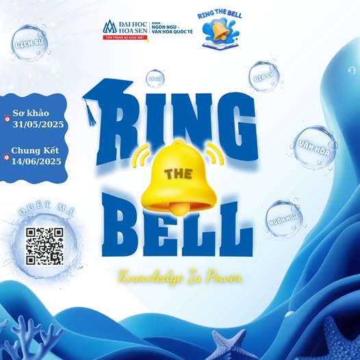 Bạn có tự tin với tốc độ phản xạ, tư duy ngôn ngữ và kiến thức đa lĩnh vực của mình? Hãy sẵn sàng bước vào “đấu trường” RING THE BELL 2025 – nơi những bộ óc bản lĩnh sẽ cùng tranh tài để trở thành người cuối cùng được vinh danh. I. GIỚI THIỆU CHUNG “Ring the bell” là sân chơi học thuật bằng tiếng Anh, nơi bạn được thách thức qua những câu hỏi đa lĩnh vực: từ ngôn ngữ, văn hóa, lịch sử, địa lý đến khoa học và xã hội của các quốc gia trên thế...