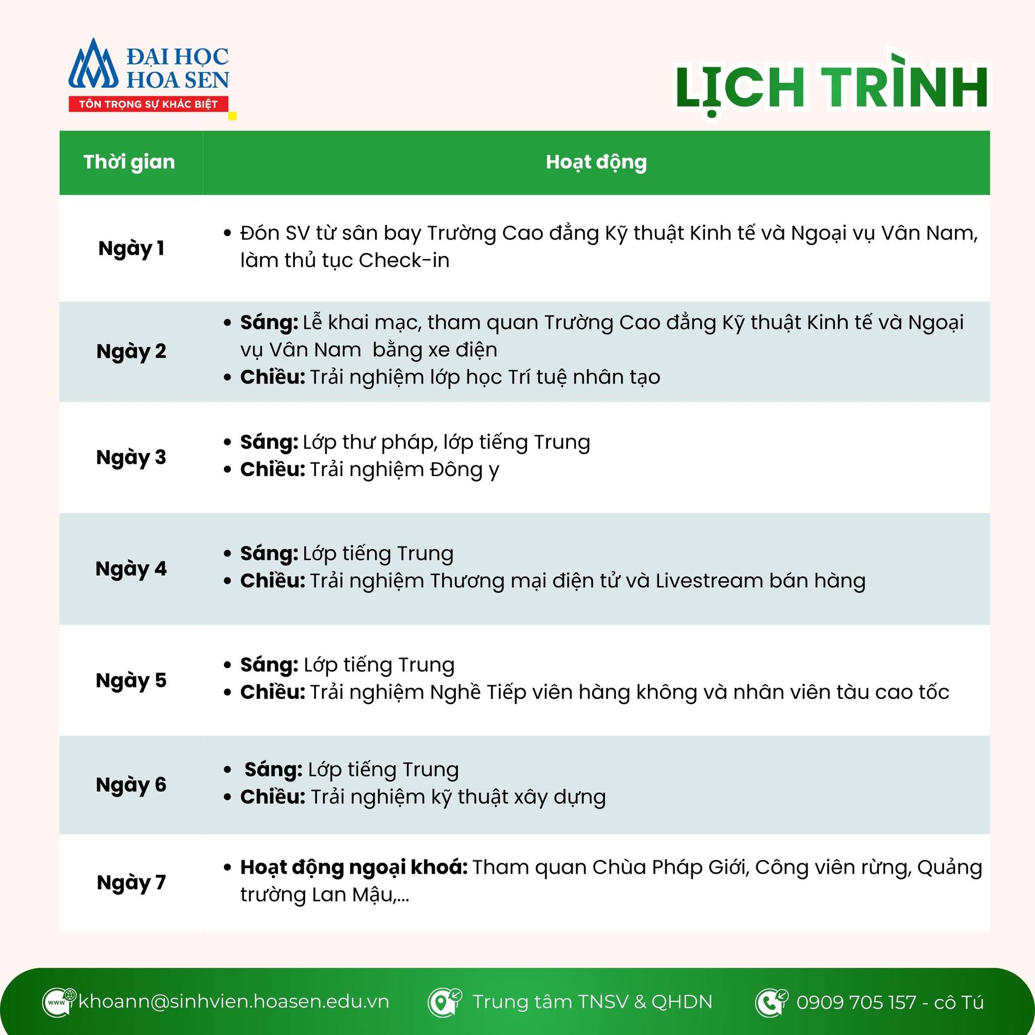 *Lưu ý: Sinh viên đã đăng ký vui lòng không hủy chuyến. Nếu hủy chuyến sẽ không được hoàn tiền.