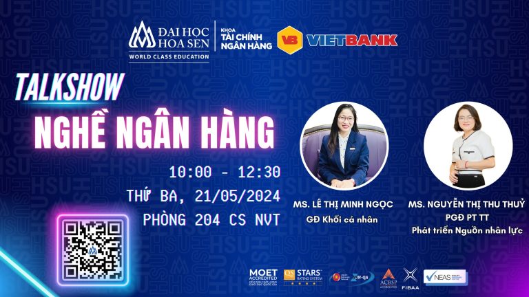 19/05/2024 ️Hành trình khám phá và kết nối với ngành ngân hàng đang chờ đợi bạn! Khoa Tài chính – Ngân hàng hân hạnh thông báo về buổi Talkshow “Nghề ngân hàng”, một cơ hội không thể bỏ lỡ cho bạn để khám phá và hiểu rõ hơn về lĩnh vực này. Thời gian: 10:00 đến 12:30, Thứ Ba, 21/05/2024 Địa điểm: Hội trường 204, Tầng 2, Trụ sở Nguyễn Văn Tráng Nội dung sự kiện: Với sự tham gia của các diễn giả: Tại sự kiện này, bạn sẽ: Đừng bỏ lỡ cơ hội này để mở ra cánh...
