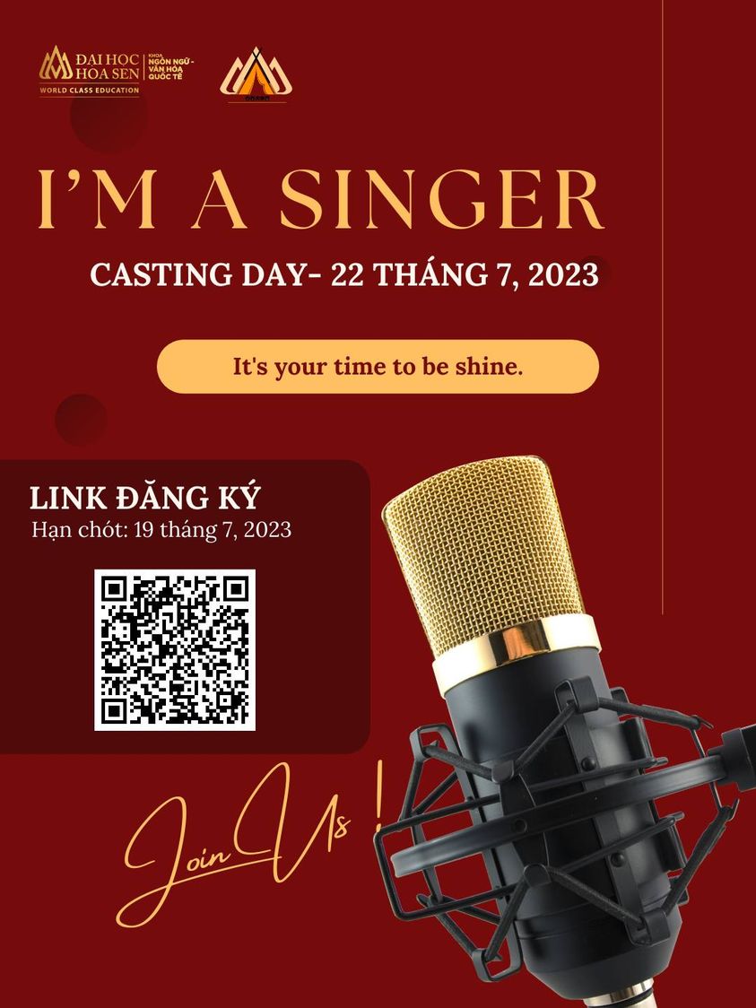 Vậy thì hãy tham gia ngay cuộc thi “I’M A SINGER” được tổ chức bởi CLB Tiếng Trung HSU, Chương trình Anh Văn Tổng Quát và Chương trình Ngoại Ngữ 2 (Khoa Ngôn ngữ – Văn hóa Quốc tế).