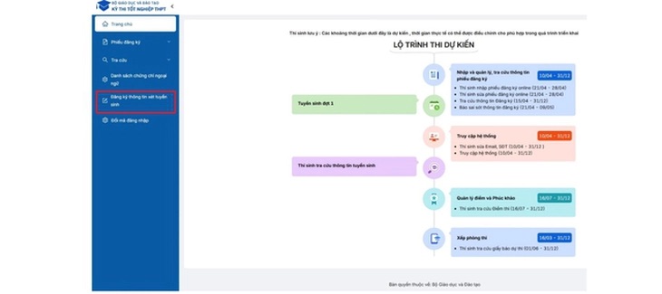 Bước 1: Thí sinh đăng nhập vào hệ thống đăng ký xét tuyển đại học, cao đẳng năm 2025 qua đường link: https://thisinh.thitotnghiepthpt.edu.vn/.