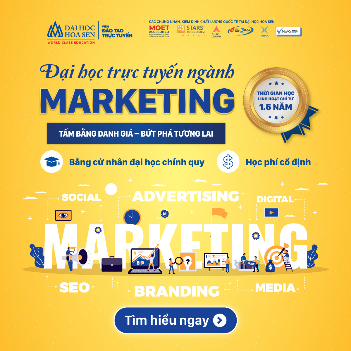 Trường Đại học Hoa Sen là một trong những trường Đại học có nền tảng và uy tín về chất lượng đào tạo nguồn nhân lực đáp ứng nhu cầu phát triển kinh tế, xã hội. Để đáp ứng nhu cầu của người học trong thời đại 4.0. Trường Đại học Hoa Sen đã xây dựng và triển khai phương thức đào tạo trực tuyến phù hợp với định hướng và sự lựa chọn của đông đảo người học trên cả nước. Chương trình Đại học trực tuyến Trường Đại học Hoa Sen đang đào tạo 5 ngành: Quản trị kinh doanh, Ngôn ngữ Anh, Công nghệ thông tin, Luật kinh tế, Marketing. Thời gian đào tạo chỉ từ 1.5 năm (tùy theo từng đối tượng)