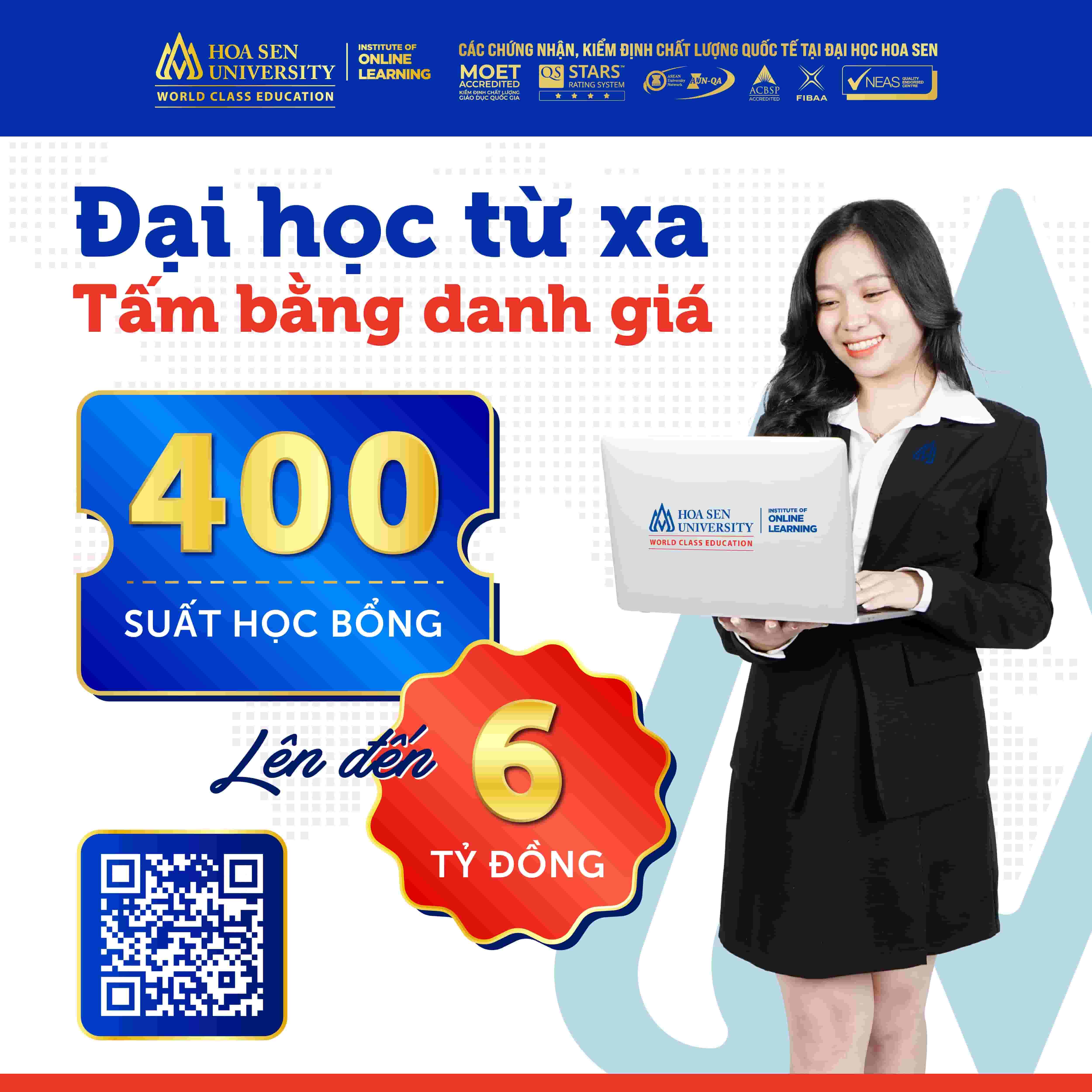 Viện Đào tạo trường trực tuyến Đại học Hoa Sen công bố 400 suất học bổng trị giá lên đến 6 tỷ đồng dành cho học viên đăng ký Chương trình đào tạo từ xa HSU. Với 5 chuyên ngành “hot” với tỷ lệ làm việc cao ngay khi tốt nghiệp gồm: Ngôn ngữ Anh, Công nghệ thông tin, Luật Kinh tế, Marketing, Quản trị kinh doanh. Chọn học tại HSU, mang đến những lợi ích cho bạn như: – Chương trình đào tạo tiêu chuẩn quốc tế, kiểm tra xác định.– Không cần thi, chỉ cần xét tuyển từ THPT...