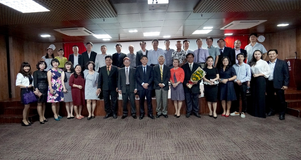 GS Trương Nguyện Thành (bìa trái), Phó Hiệu trưởngTrường ĐH Hoa Sen và Ông Huỳnh Nguyễn Hồng Chương, Chủ tịch CLB Hi CEO