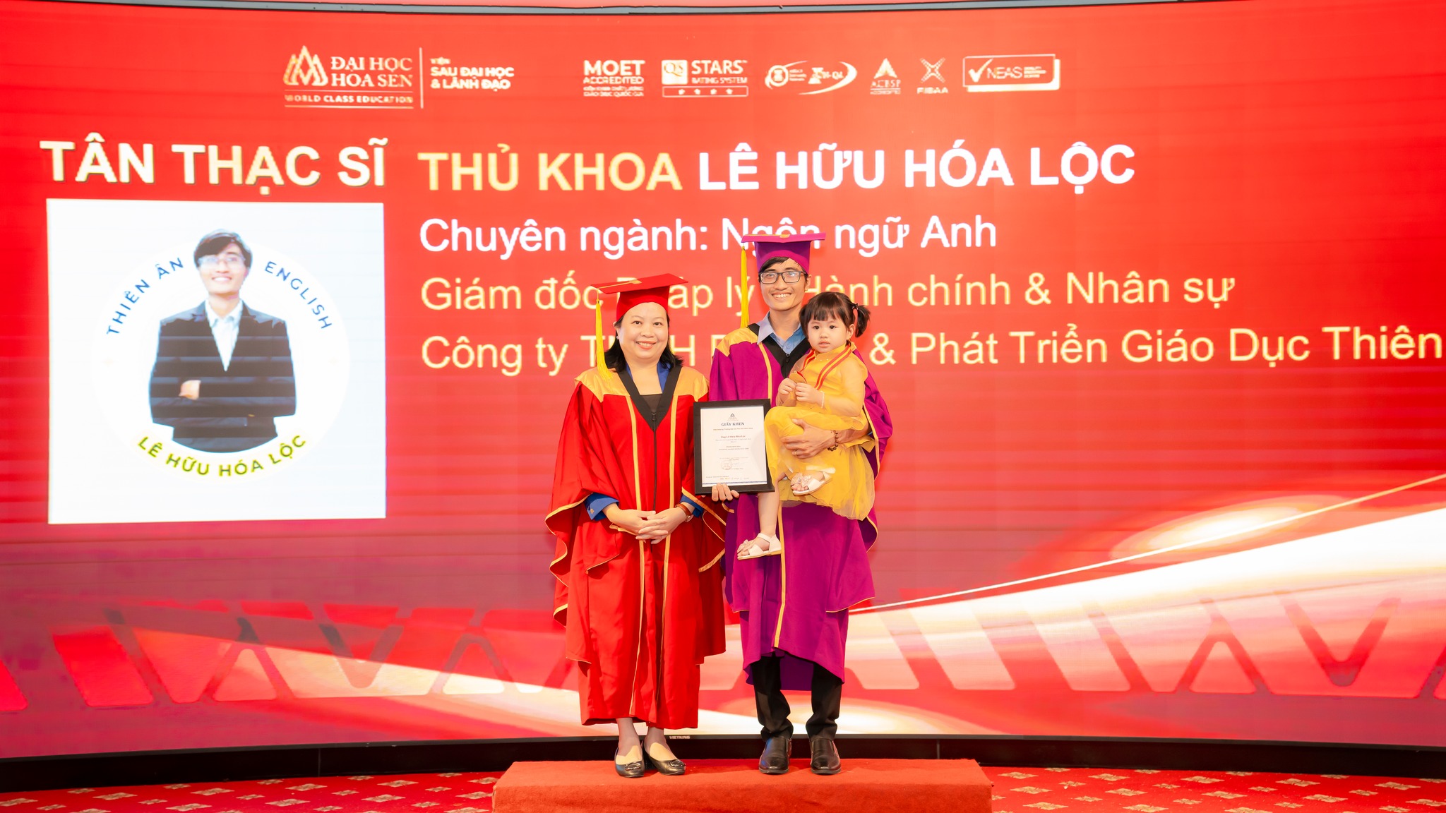 Nghi thức tung nón mừng tốt nghiệp của các Tân Thạc sĩTS. Huỳnh Văn Tài – Giám đốc chương trình MAE cùng các Tân Thạc sĩ chuyên ngành Ngôn ngữ AnhTân Thạc sĩ chuyên ngành Quản trị Kinh doanh chụp ảnh lưu niệm cùng các Thầy Cô trong Ban Giảng huấnTS. Phan Thị Việt Nam – Phó Hiệu trưởng Trường Đại học Hoa Sen trao Giấy khen và Huy chương cho Tân Thạc sĩ Nguyễn Phước Thành – Thủ khoa chuyên ngành Quản trị Kinh doanhTS. Phan Thị Việt Nam – Phó Hiệu trưởng Trường Đại học Hoa Sen trao giấy khen và huy chương cho Tân Thạc sĩ Lê Hữu Hóa Lộc – Thủ khoa chuyên ngành Ngôn ngữ Anh