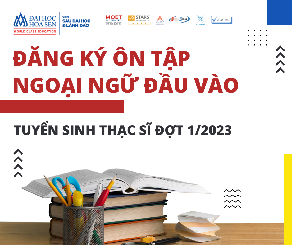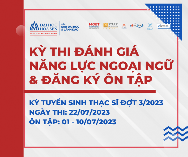 The Institute for Postgraduate & Leadership Studies at Hoa Sen University announces the opening of preparatory courses to assist candidates who have not met the foreign language exemption criteria in the Entrance Foreign Language Proficiency Test for the Master’s programs in Business Administration (MBA) and English Language (MAE). Preparatory Course Information for the Master’s Degree Admission Test Session 2/2023: Foreign Language: English (only for MBAT), French, and ChineseStudy Period: 01/07/2023 – 10/07/2023Schedule: 4 sessions, 12 lessons (18:30 – 21:00)Tuition Fee: 1,000,000 VNDFormat: Online (The class link will be sent to students before 1/7/2023)Registration Link: http://xettuyencaohoc.hoasen.edu.vn/ Instructions: Candidates should register an...