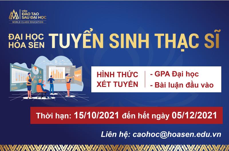 The Postgraduate Education Institute, Hoa Sen University, announces the admission for the second intake of Master’s programs in 2021, with majors including Business Administration (MBA), English Language (MAE), and Tourism and Hospitality Management (MA Tourism). The admission process is based on undergraduate GPA and a submission of an entrance essay. Applications are accepted from January 10, 2022, until March 10, 2022. >> Hoa Sen University: Announcement of Master’s Degree Enrollment, 2022 >> Hoa Sen University: Opportunity to receive Master’s scholarships up to 100,000,000 VND I. ENROLLED SPECIALIZATIONS STT SPECIALIZATION FIELD CODE DURATION OF TRAINING TRAINING PROGRAM 1 Business Administration (MBA)...