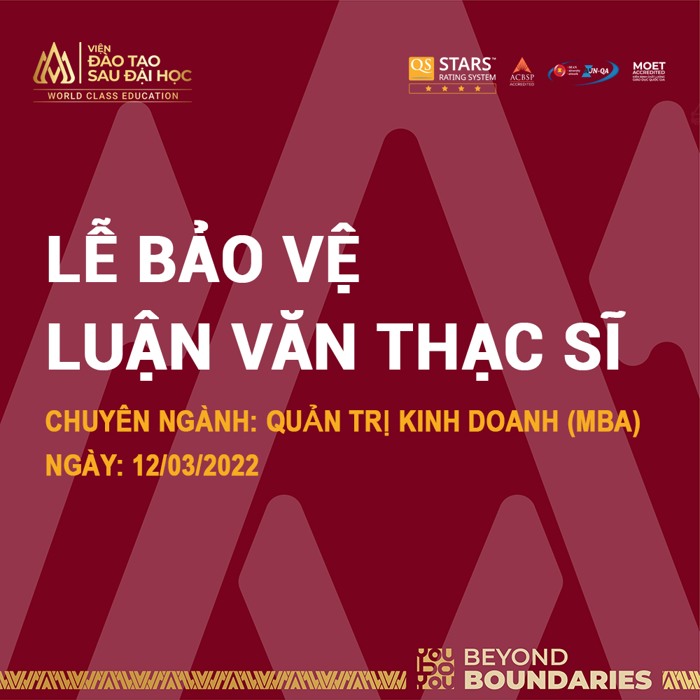 Ngày 12/03/2022 vừa qua, Viện Đào tạo Sau Đại học đã tổ chức thành công lễ bảo vệ luận văn thạc sĩ chuyên ngành Quản trị Kinh doanh (MBA) cho 4 học viên cao học. Chúng tôi tự hào giới thiệu và trân trọng chúc mừng các Tân Thạc sĩ của Trường Đại học Hoa Sen!
