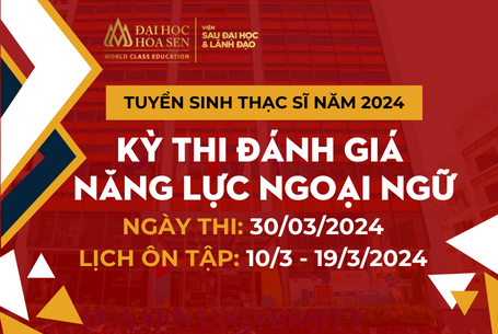 Trường Đại học Hoa Sen (HSU) ban hành quy định chuẩn trình độ ngoại ngữ trong công tác tuyển sinh và đào tạo trình độ thạc sĩ dành cho học viên và ứng viên tham gia các chương trình Thạc sĩ