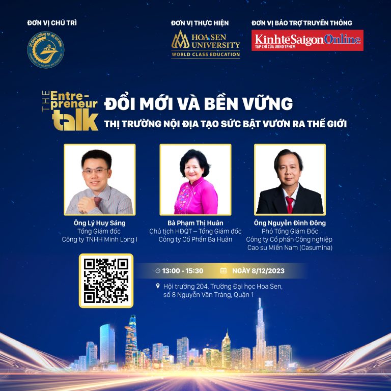 Sự kiện Entrepreneur Talk do Sở Công thương TP.HCM phối hợp cùng ĐH Hoa Sen và Tạp chí Kinh tế Sài Gòn đã tổ chức số đầu tiên vào ngày 28/04/2023 tại Trường Đại học Hoa Sen với chủ đề "Xu hướng kinh doanh hiệu 2023".