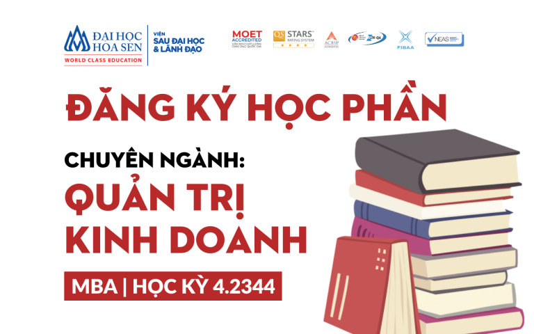 Học kỳ 4, năm học 2023 - 2024 (Mã học kỳ: 2344), Viện Sau Đại học & Lãnh đạo, Trường Đại học Hoa Sen tổ chức các học phần sau trong chương trình Thạc sĩ Quản trị Kinh doanh (MBA).