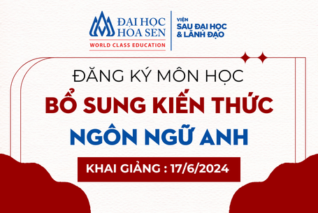 Viện Sau Đại học & Lãnh đạo, Trường Đại học Hoa Sen tổ chức lớp Bổ sung kiến thức môn nhập môn Giảng dạy tiếng Anh dành cho học viên tốt nghiệp bậc đại học ngành gần hoặc ngành khác khi đăng ký dự tuyển chương trình Thạc sĩ Ngôn Ngữ Anh (MAE)