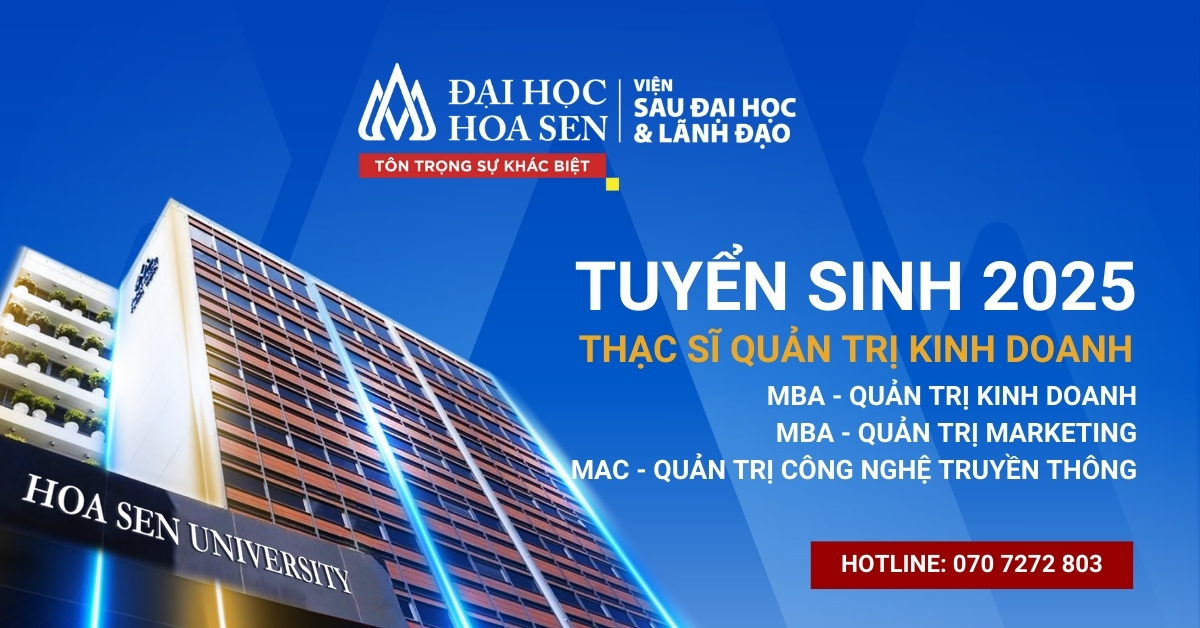 Đại học Hoa Sen thông báo tuyển sinh chương trình thạc sĩ 2025 với hai chuyên ngành đạt chuẩn Quốc tế AUN-QA: Quản trị kinh doanh (MBA), Ngôn ngữ Anh (MAE) và Thạc sĩ Quản trị Công nghệ Truyền thông (dự kiến) với với tổng giá trị học bổng lên đến 5 TỶ ĐỒNG.
