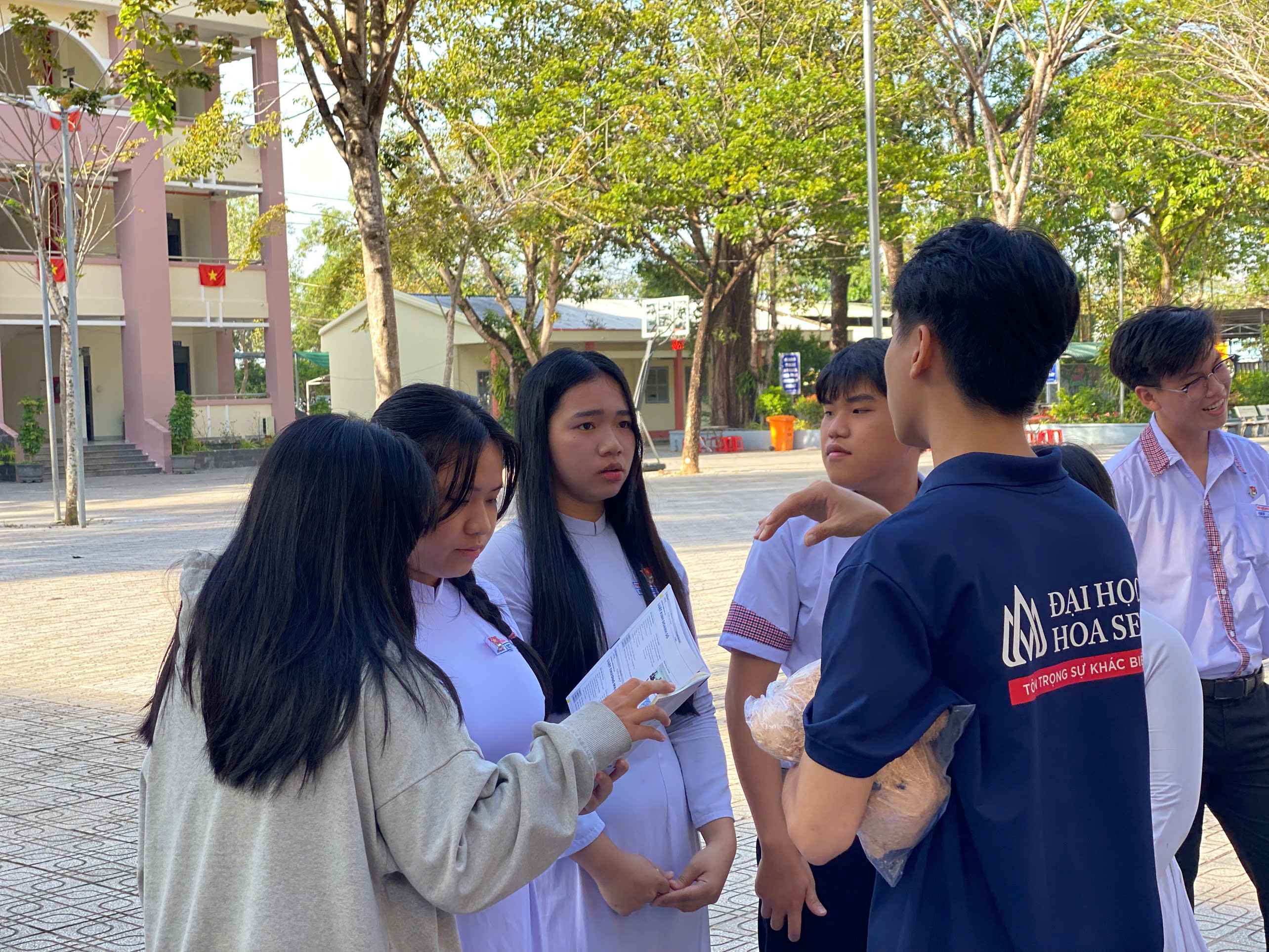 Ngoài hoạt động tại Trường THPT Phú Quốc và THPT Dương Đông, sinh viên Hoa Sen còn tiếp tục hành trình gặp gỡ, giao lưu và chia sẻ trải nghiệm học tập, thông tin học bổng với học sinh tại nhiều trường THPT trên địa bàn tỉnh An Giang.