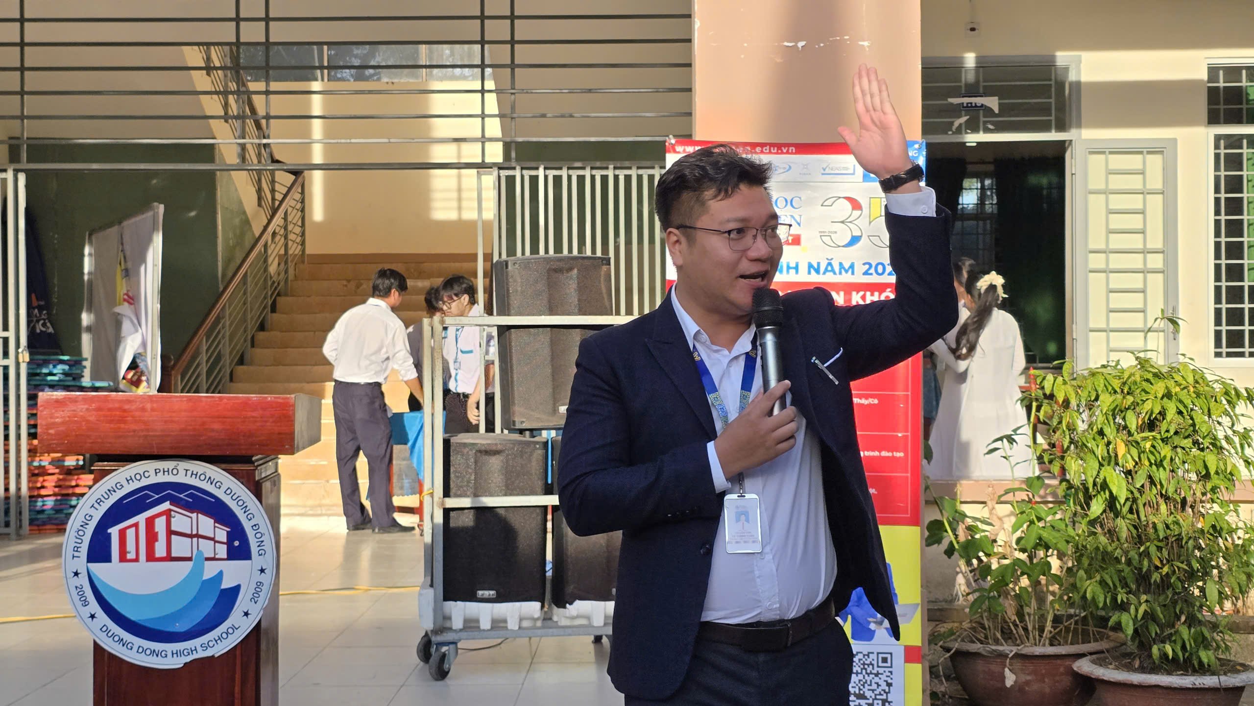 Đồng thời, anh Lê Thanh Tuấn – đại diện Trung tâm Tuyển sinh cũng trao học bổng đến Trường THPT Dương Đông, gửi gắm sự tin tưởng và khích lệ dành cho các em học sinh đang trong giai đoạn quan trọng của việc lựa chọn ngành học. Anh Thanh Tuấn cũng chia sẻ với học sinh về cách chọn ngành, chọn nghề phù hợp, tư vấn và giải đáp những băn khoăn trong quá trình định hướng tương lai.