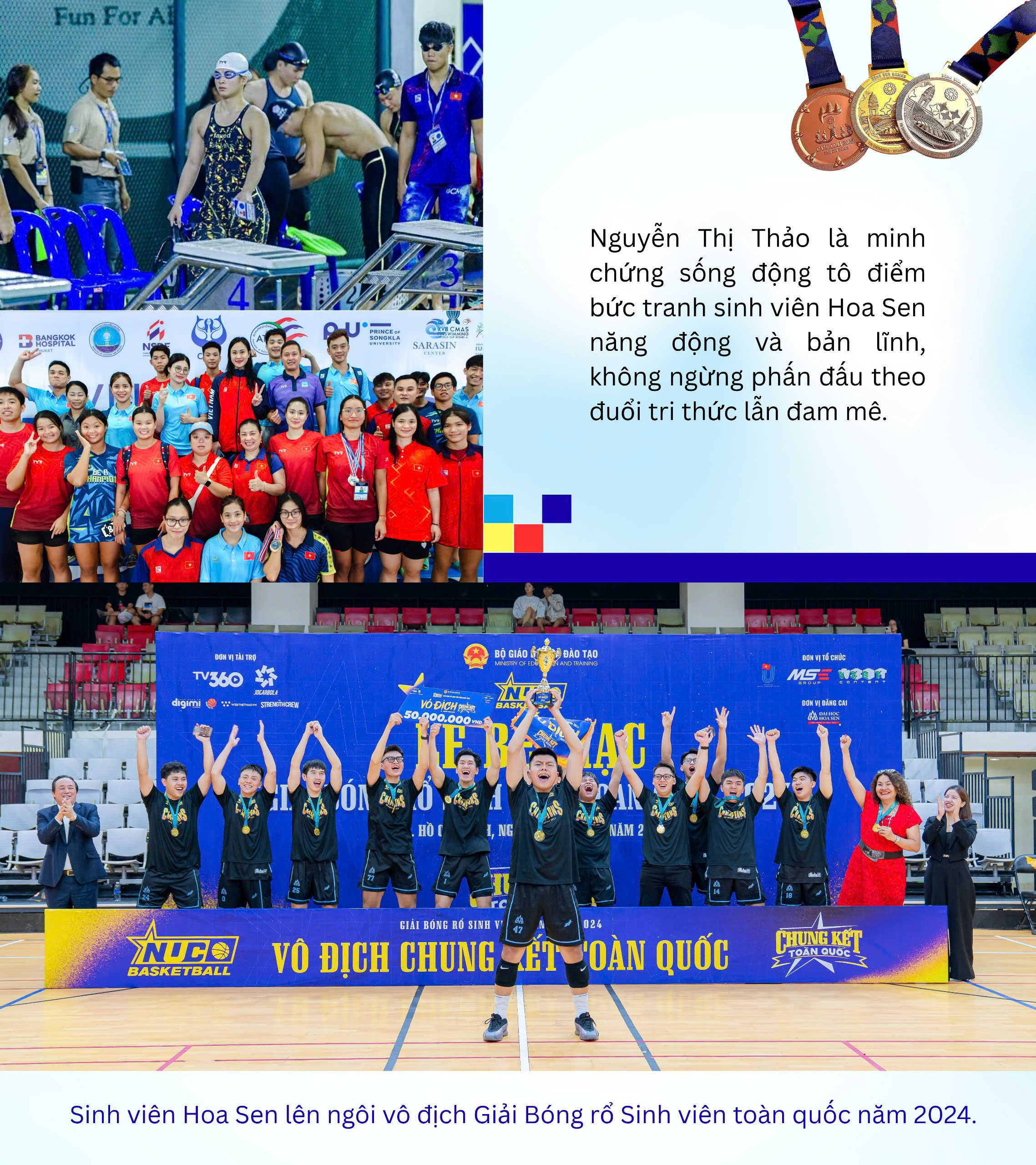 Điển hình, “Kình ngư” Nguyễn Thị Thảo – sinh viên ngành Quản trị Nhân lực từng “ẵm” trọn bộ Huy chương Vàng – Bạc – Đồng tại 2 kỳ SEAGAME 31 & 32, giành 4 tấm huy chương tại giải Bơi – Lặn Vô địch Quốc gia cùng nhiều thành tích ấn tượng khác.