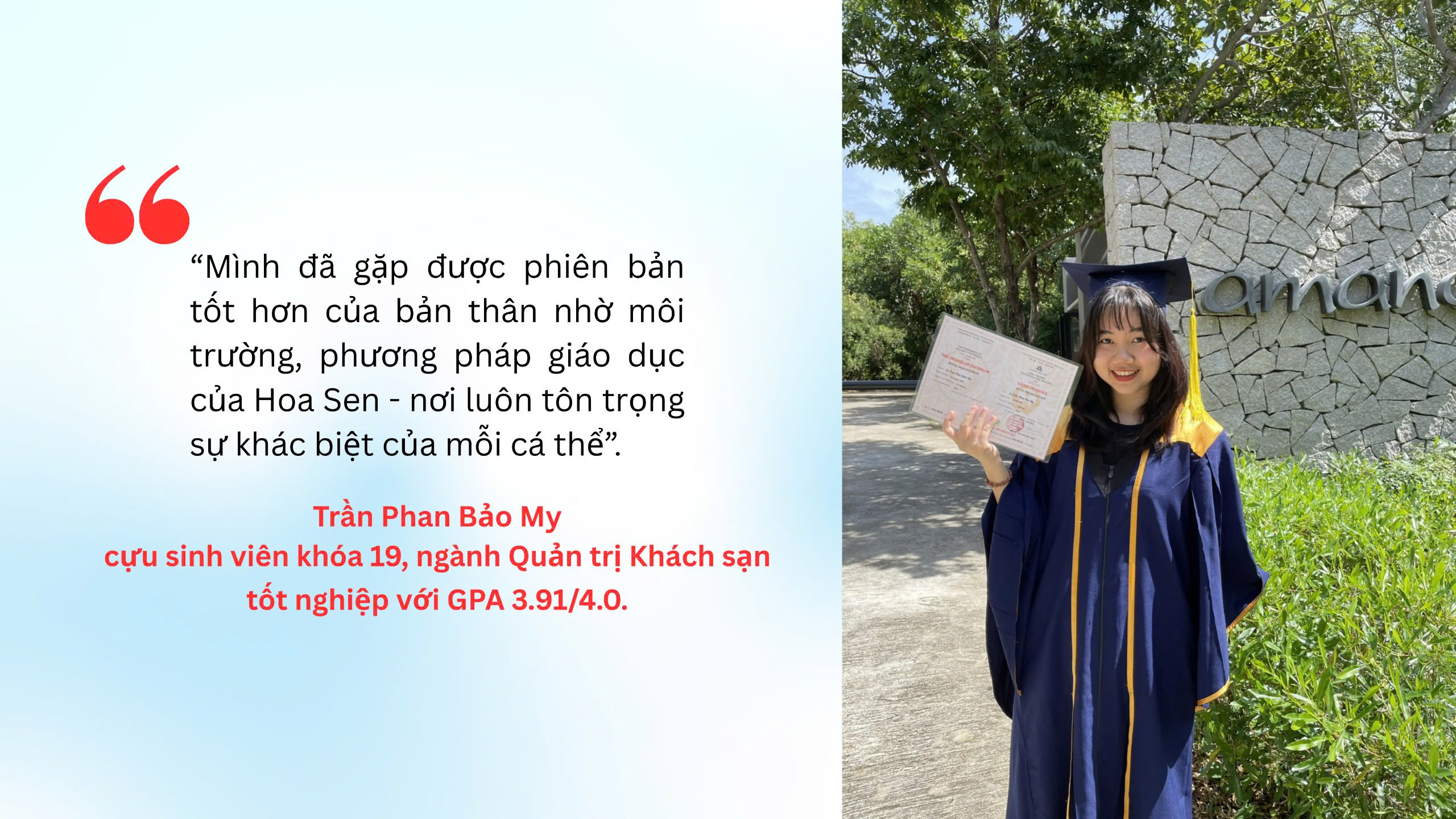Hành trình của Thuỳ Trang là hình mẫu cho sự kết hợp giữa nỗ lực cá nhân và một nền giáo dục chuẩn quốc tế của HSU. Dấu mốc quan trọng trong quá trình quốc tế hóa giáo dục của Nhà trường là loạt chương trình đào tạo được kiểm định bởi các tổ chức uy tín toàn cầu trong nhiều năm liền.