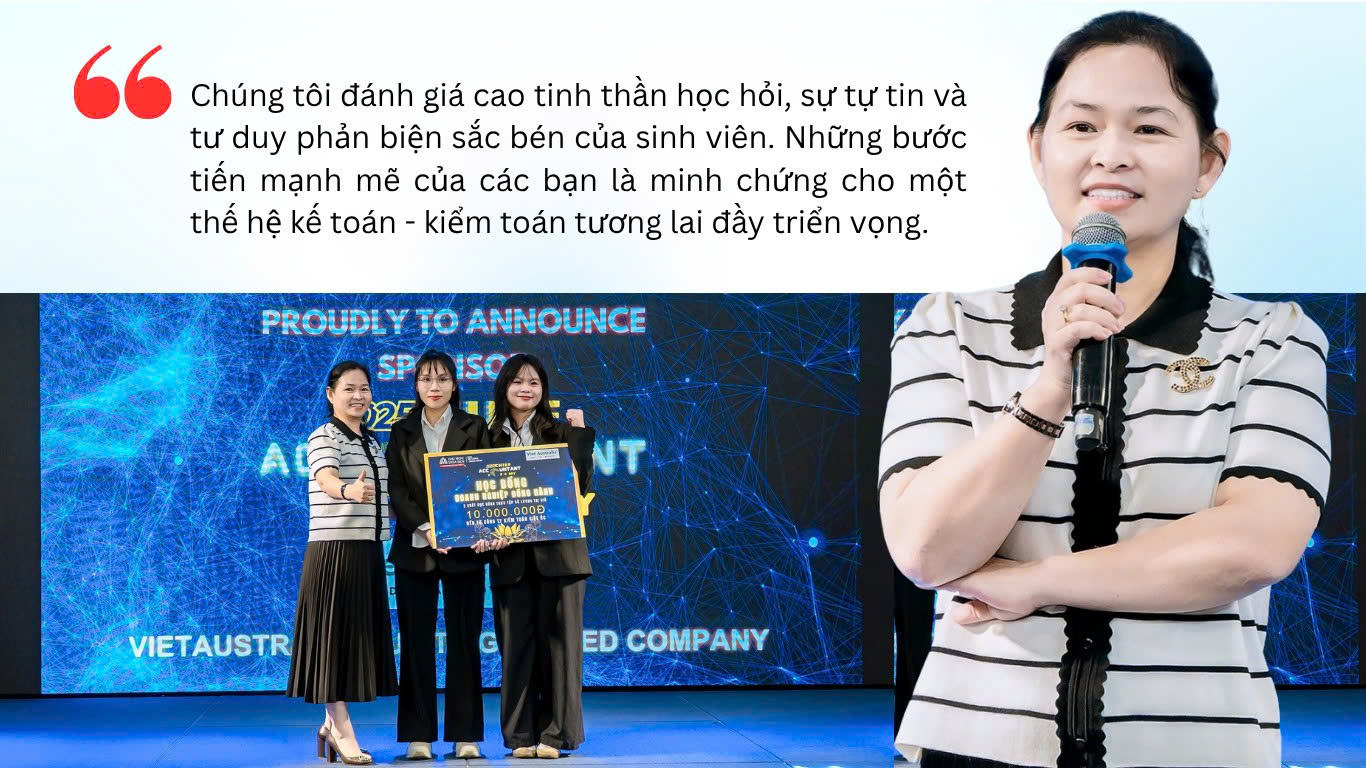 Là nhà tài trợ – đơn vị đồng hành xuyên suốt của cuộc thi Một Ngày Làm Kế Toán Trưởng của Khoa Tài chính – Ngân hàng từ năm 2022, đồng thời là đơn vị tuyển dụng, bà Ngụy Thúy Phượng – Phó Tổng Giám đốc Công ty TNHH Kiểm toán Việt Úc cho hay: