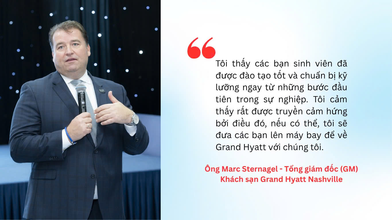 Sau quá trình phỏng vấn sinh viên HSU, ông Marc Sternagel – Tổng Giám đốc Khách sạn Grand Hyatt Nashville bày tỏ sự ấn tượng về kỹ năng của sinh viên HSU.