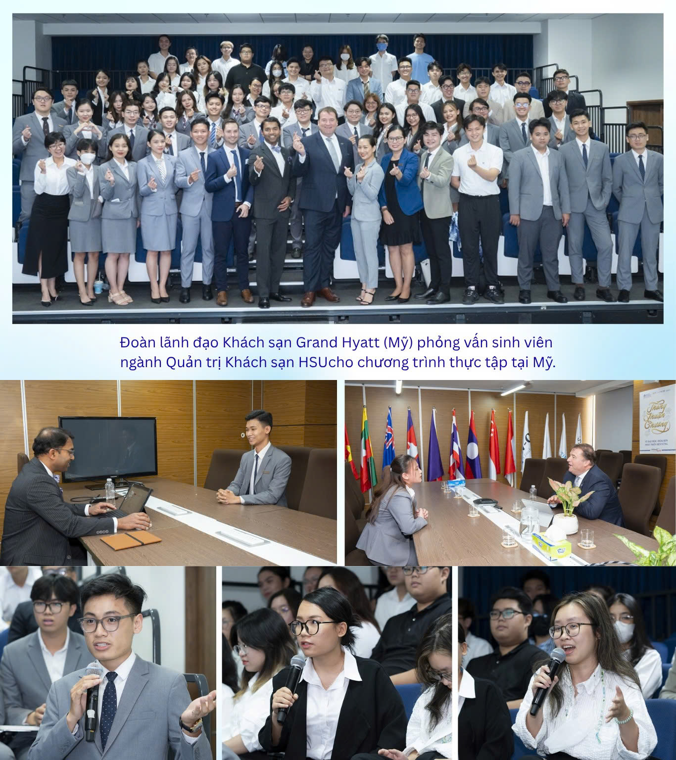 Khi mới chỉ là một sinh viên năm thứ 4, Quách Thành Đạt – sinh viên ngành Quản trị nhà hàng và dịch vụ ăn uống đã nhận được mức lương khởi điểm gần 50 triệu đồng/tháng khi trúng tuyển thực tập tại khách sạn 5 sao Grand Hyatt (Mỹ). Nhờ kỹ năng nghề nghiệp cũng như khả năng giao tiếp tự tin, chuyên nghiệp, Đạt đã nhận được cơ hội này qua buổi phỏng vấn trực tiếp với Đoàn lãnh đạo của Khách sạn Grand Hyatt (Mỹ) tại HSU.