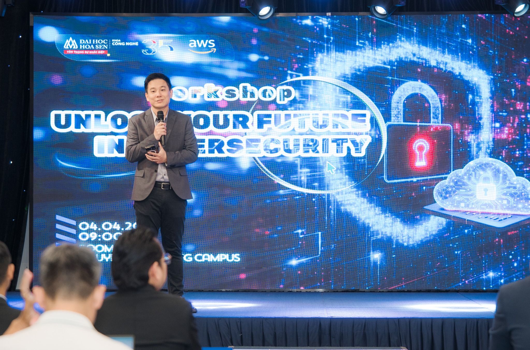 Từ trải nghiệm làm việc trong môi trường công nghệ quốc tế, anh giúp sinh viên hình dung rõ hơn về cách doanh nghiệp vận hành hệ thống bảo mật, đồng thời giới thiệu các công cụ bảo mật trên nền tảng AWS và cách những giải pháp này được ứng dụng trong thực tế.