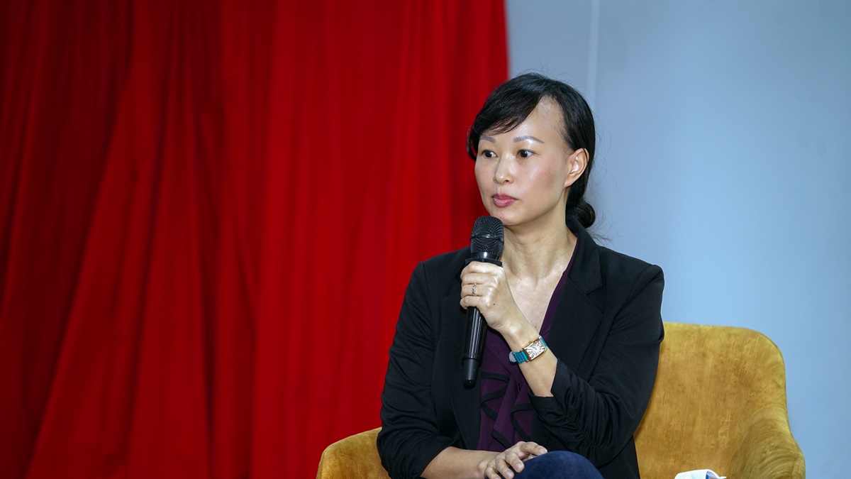 Shark Linh tại talkshow do Đại học Hoa Sen phối hợp tổ chức.