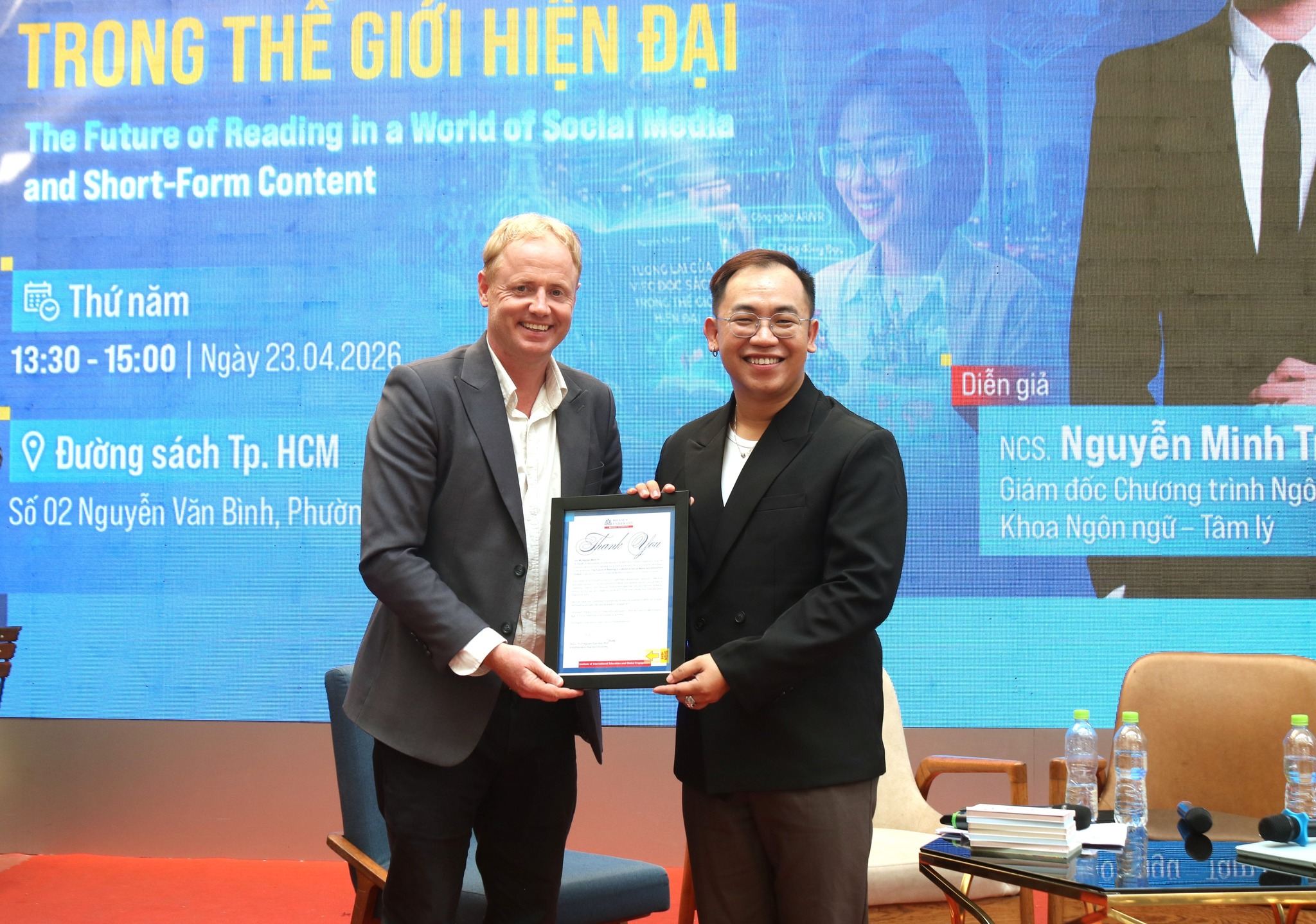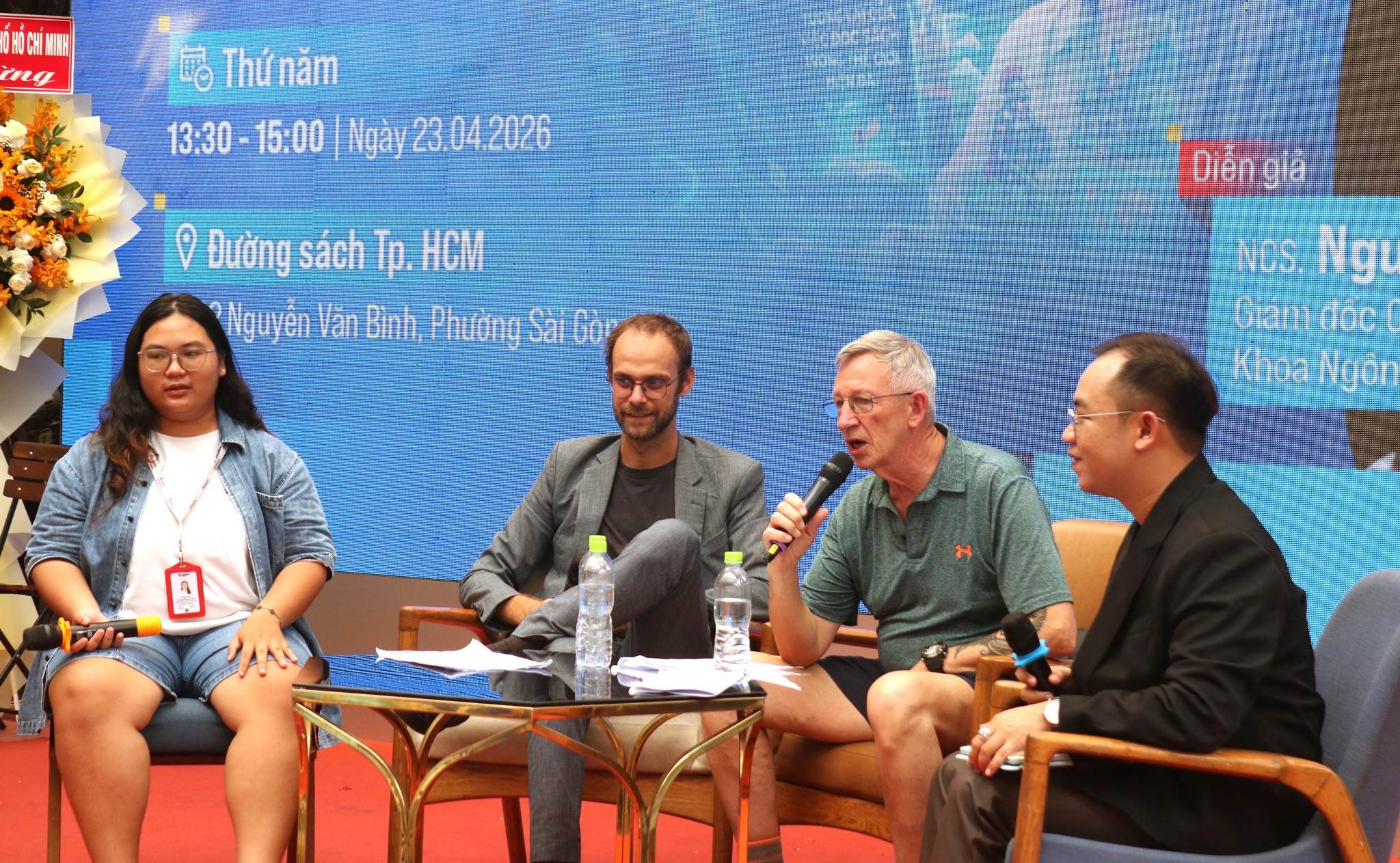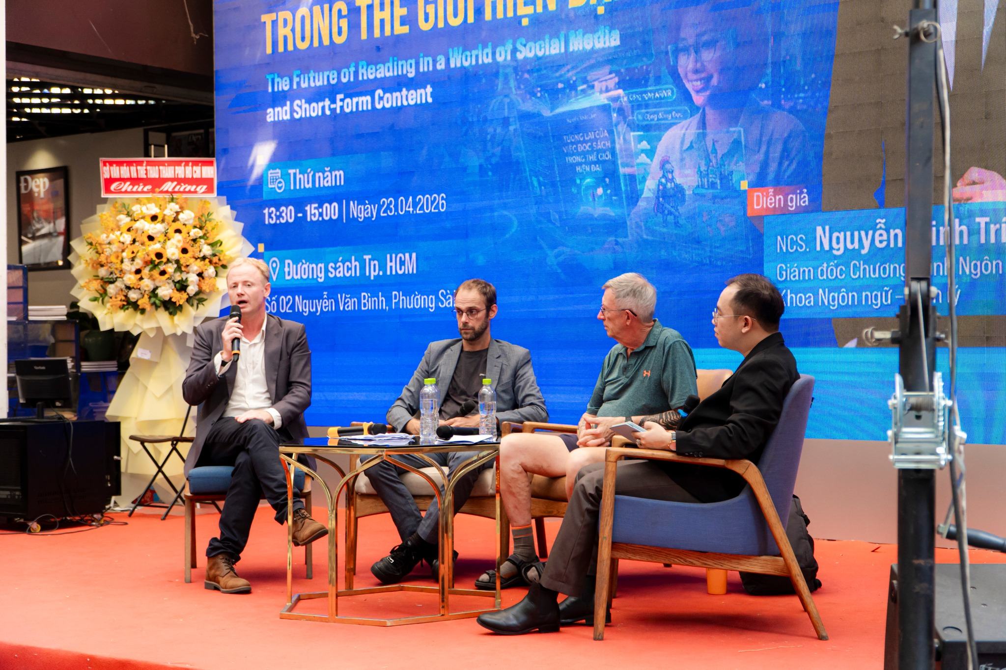 Chiều 23/4/2026, tại Đường Sách TP.HCM, workshop “Tương lai của việc đọc sách trong thế giới hiện đại” đã diễn ra trong không khí cởi mở và giàu tương tác. Chương trình do Viện Đào tạo và Hợp tác quốc tế phối hợp cùng Trung tâm Thông tin – Thư viện Trường Đại học Hoa Sen tổ chức, mang đến một góc nhìn mới về văn hóa đọc trong bối cảnh chuyển đổi số.