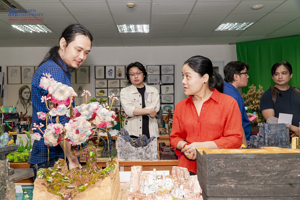 Môn thiết kế bối cảnh là một môn học không mới và đã hiện hữu trong quy trình thiết kế giải trí, phim và game từ rất lâu. Tuy nhiên, thường chỉ dừng lại ở concept 2D nên đôi khi thiếu tính khả thi và sinh viên chưa được đi đến tận cùng của quy trình tạo dựng thế giới từ tưởng tượng. Tại ĐH Hoa Sen, việc chuyển thể từ bản vẽ 2D thành sa bàn trong không gian ba chiều (3D) hoàn thiện, giải quyết các vướng mắc về tính logic của thiết kế, tổ chức không gian, đồng thời có thêm kỹ năng thủ công. Đây chính là sự khác biệt cuốn hút sinh viên say mê và thể hiện sự sáng tạo vô biên.