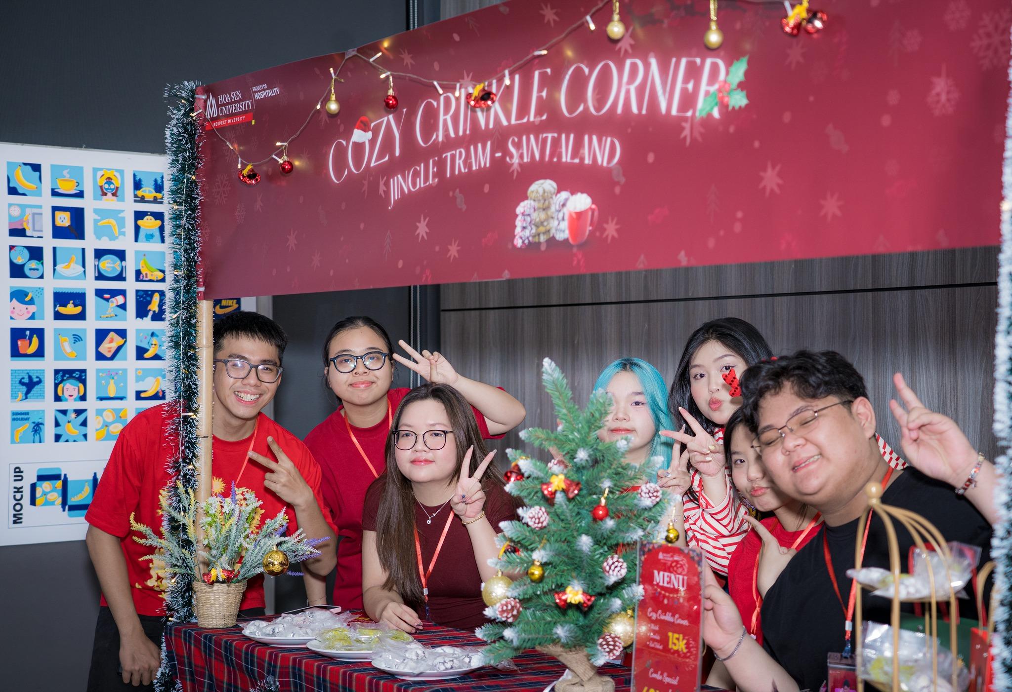 Ngay từ khu vực sảnh, Jingle Tram đã biến không gian quen thuộc của HSU thành điểm hẹn Giáng sinh ấm áp. Các góc check-in, photobooth được đầu tư chỉn chu, tạo nên dòng chảy liên tục của cảm xúc, nơi mỗi “hành khách” ghé thăm đều dễ dàng cảm nhận tinh thần lễ hội và sự chào đón thân thiện.