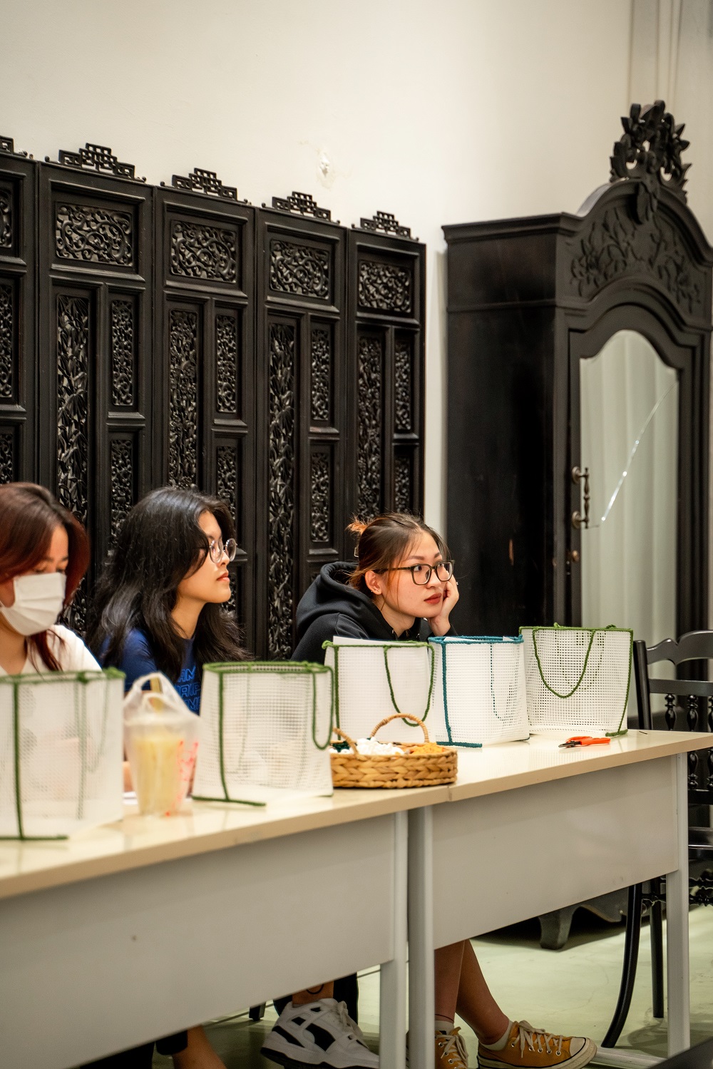 Trong khuôn khổ đề án kết thúc môn học, các bạn sinh viên còn được tham gia workshop “Thiền thêu” diễn ra vào ngày 18/08/2023. Sự kiện được thực hiện bởi ông Thanh Phúc- Co-Founder ETU Handcraft: Người tham dự sẽ được hướng dẫn đan sợi cotton để tạo ra chiếc móc khóa có hình dáng những chữ cái in hoa.