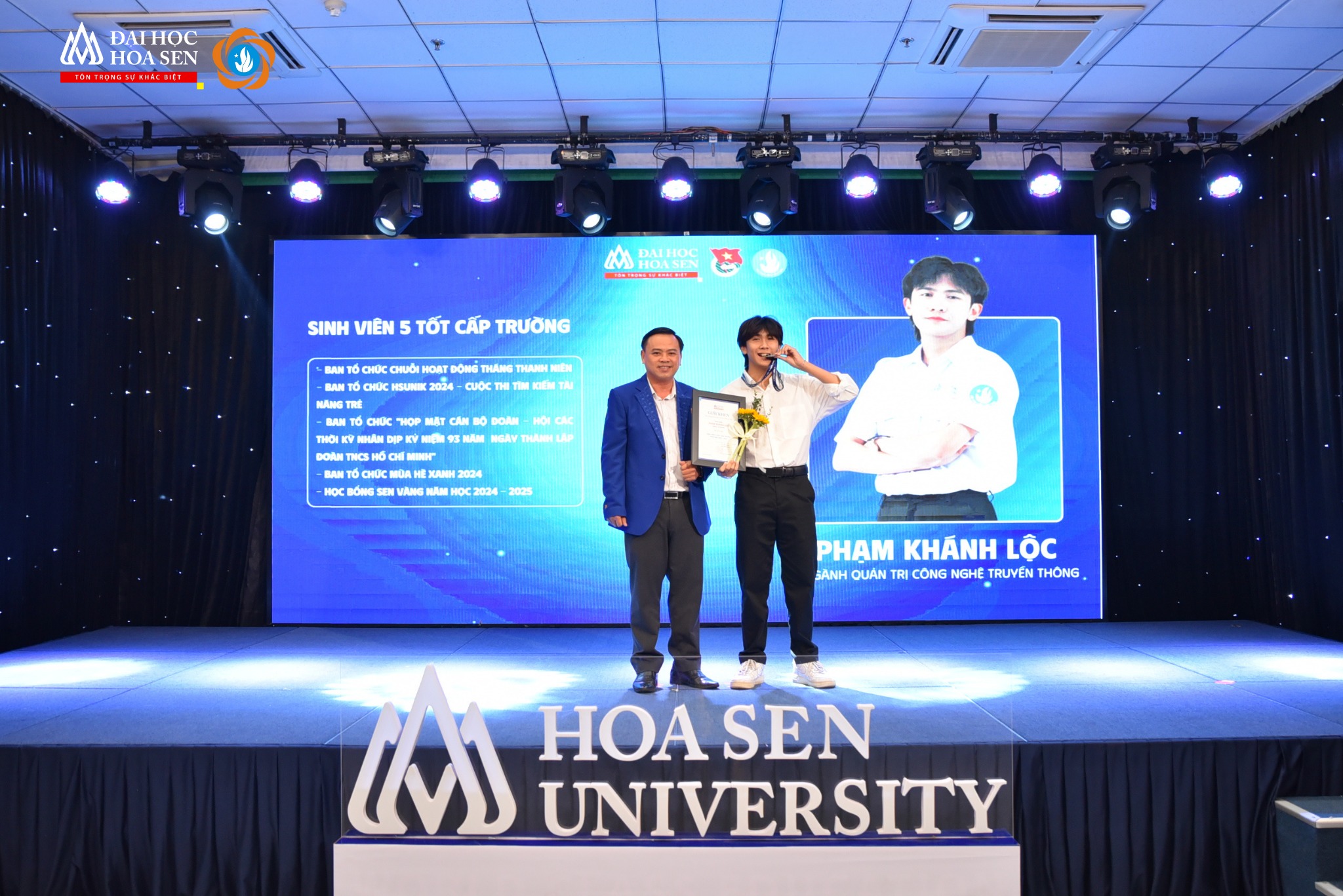 On the morning of January 5, 2025, the university held a ceremony to honor the top students from the 2023-2024 academic year. For Hoa Sen University, 2025 will be remembered as a year of significant success, a direct result of its students’ dedication, with 15 earning Faculty-level honors, 47 receiving School-level recognition, and one outstanding student securing the top City and Central-level titles. These accomplishments reflect the strong spirit of learning and ambition of Hoa Sen University’s young generation.
