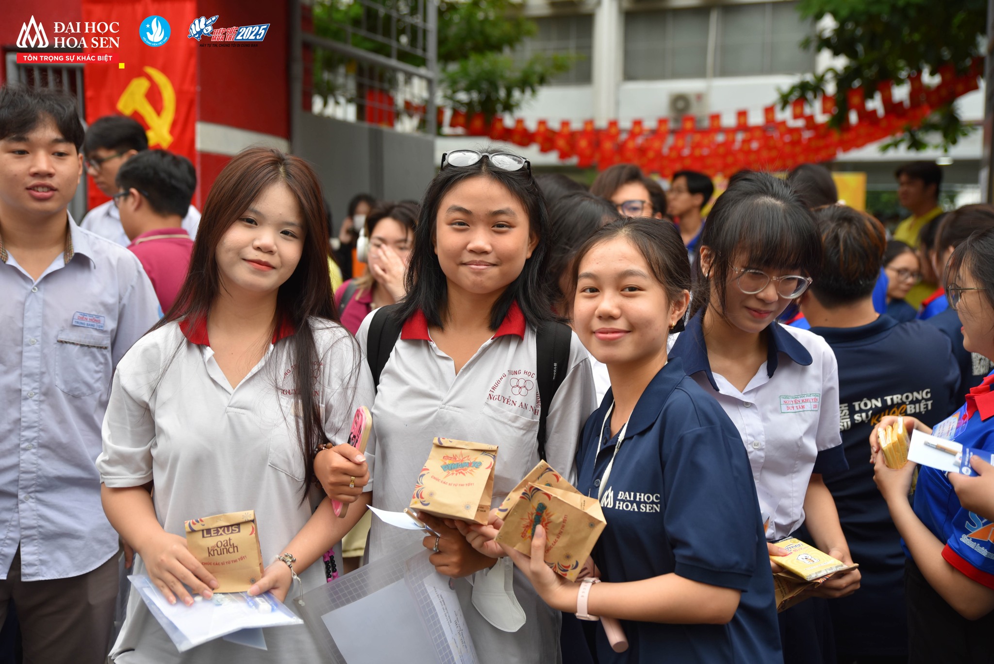 Từ ngày 25 – 27/06/2025, hơn 100 sinh viên tình nguyện của Trường Đại học Hoa Sen đã đồng hành cùng thí sinh tại ba điểm thi THPT ở TP.HCM: Trường THPT Bùi Thị Xuân, Trường THPT Sương Nguyệt Anh và Trường THPT Nguyễn An Ninh. Với sự chuẩn bị chu đáo, đội hình tình nguyện đã hỗ trợ nước uống, dụng cụ làm bài, áo mưa, dù che nắng và tư vấn hướng nghiệp cho thí sinh cùng phụ huynh.