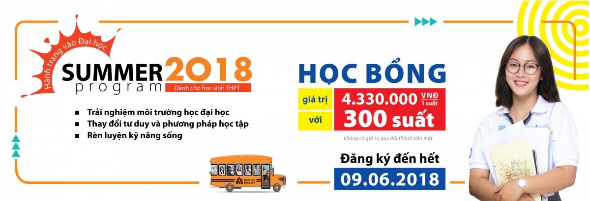 Đại học Hoa Sen sẽ cấp 300 suất học bổng cho các học sinh đăng ký tham gia Summer Program. Giá trị của mỗi suất học bổng tương đương với học phí của cả chương trình.