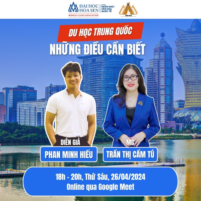 Để các bạn có thêm nhiều thông tin về việc du học tại Trung Quốc, CLB Tiếng Trung HSU tổ chức buổi Workshop Online “Du học Trung Quốc - Những điều cần biết” với sự tham gia của các diễn giả là các thầy/cô giảng viên đã và đang có cơ hội du học và làm việc tại đất nước tỷ dân này.