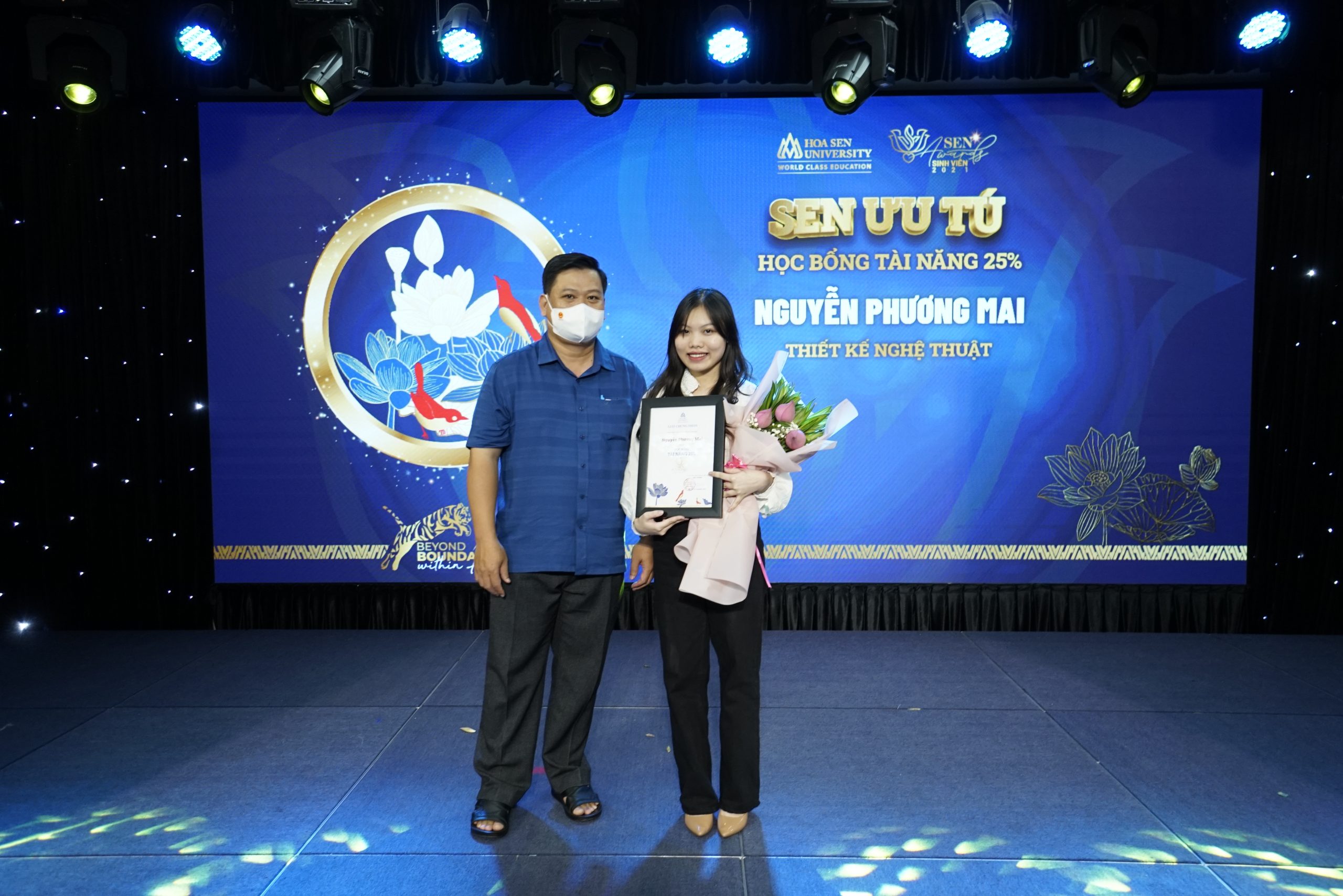 Ngày 13/1/2021, Trường Đại học Hoa Sen đã tổ chức Lễ vinh danh Sen Awards cho các bạn sinh viên xuất sắc trong học tập, nghiên cứu, các hoạt động phong trào. Trong đó có không ít các bạn là tân sinh viên với các suất học bổng do Nhà trường trao tặng. Trong không khí rộn ràng của buổi lễ, bạn Nguyễn Phương Mai cùng với ba đã gây ấn tượng khi hai cha con cùng nhau vượt hơn 200km từ Hậu Giang lên TP.HCM để tham dự Lễ vinh danh.