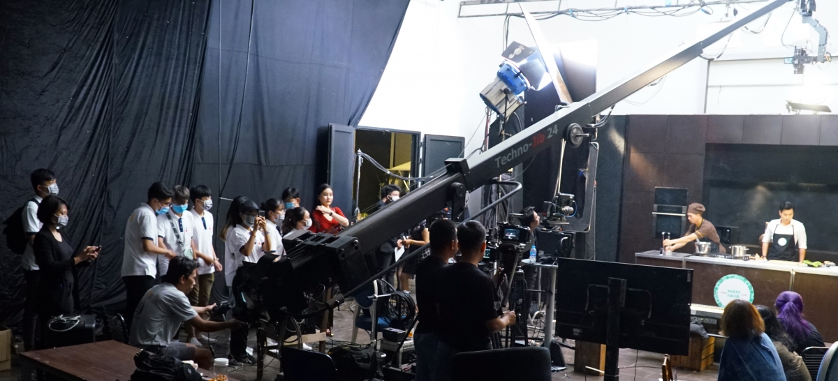 Tân sinh viên Quản trị sự kiện HSU tìm hiểu quá trình quay hình tại phim trường BHD.