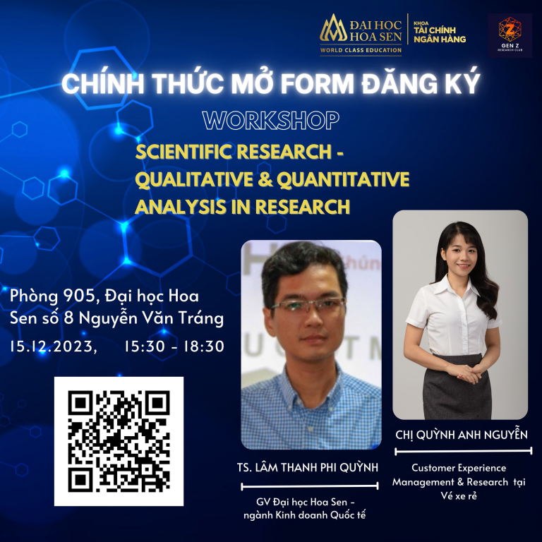Tham gia ngay tại đây: https://forms.gle/Gu11TJwRZS9MZ9dB9 Workshop lần này diễn ra nhằm mục đích mang đến cho các bạn cái nhìn tổng quan và chi tiết về nghiên cứu định lượng và định tính khi thực hiện Nghiên Cứu Khoa Học. Đồng thời, tại buổi workshop diễn giả sẽ chia sẻ kinh nghiệm, các công cụ hỗ trợ cũng như các bước để thực hiện một bài nghiên cứu hoàn chỉnh. Buổi Workshop sẽ được dẫn dắt bởi 2 diễn giả khách mời có kinh nghiệm lâu năm trong lĩnh vực nghiên cứu. Đừng bỏ lỡ cơ hội nâng cao...