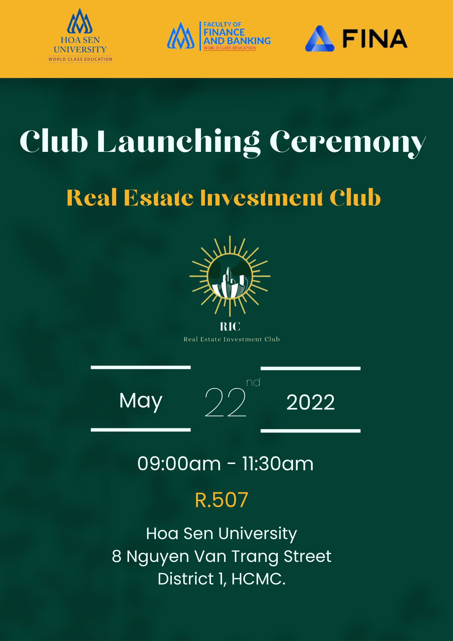 Faculty of Finance - Banking (FFB) inform all of you about the club launching ceremony "Real Estate Investment Club (RIC)" administrated by students majoring in property, FFB, HSU.