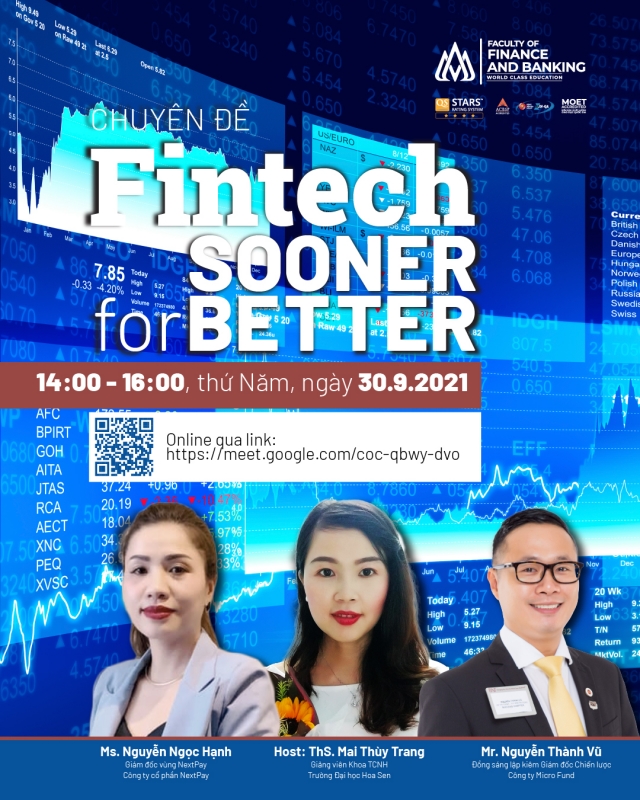 Nhằm chia sẻ kiến thức về ứng dụng công nghệ số trong lĩnh vực Tài chính, đồng thời tạo sự gần gũi và thân thiện giữa Tân sinh viên với Giảng viên và các công ty tài chính đối tác, Khoa TCNH thân mời các bạn tham gia Webinar số 14, chi tiết như sau: