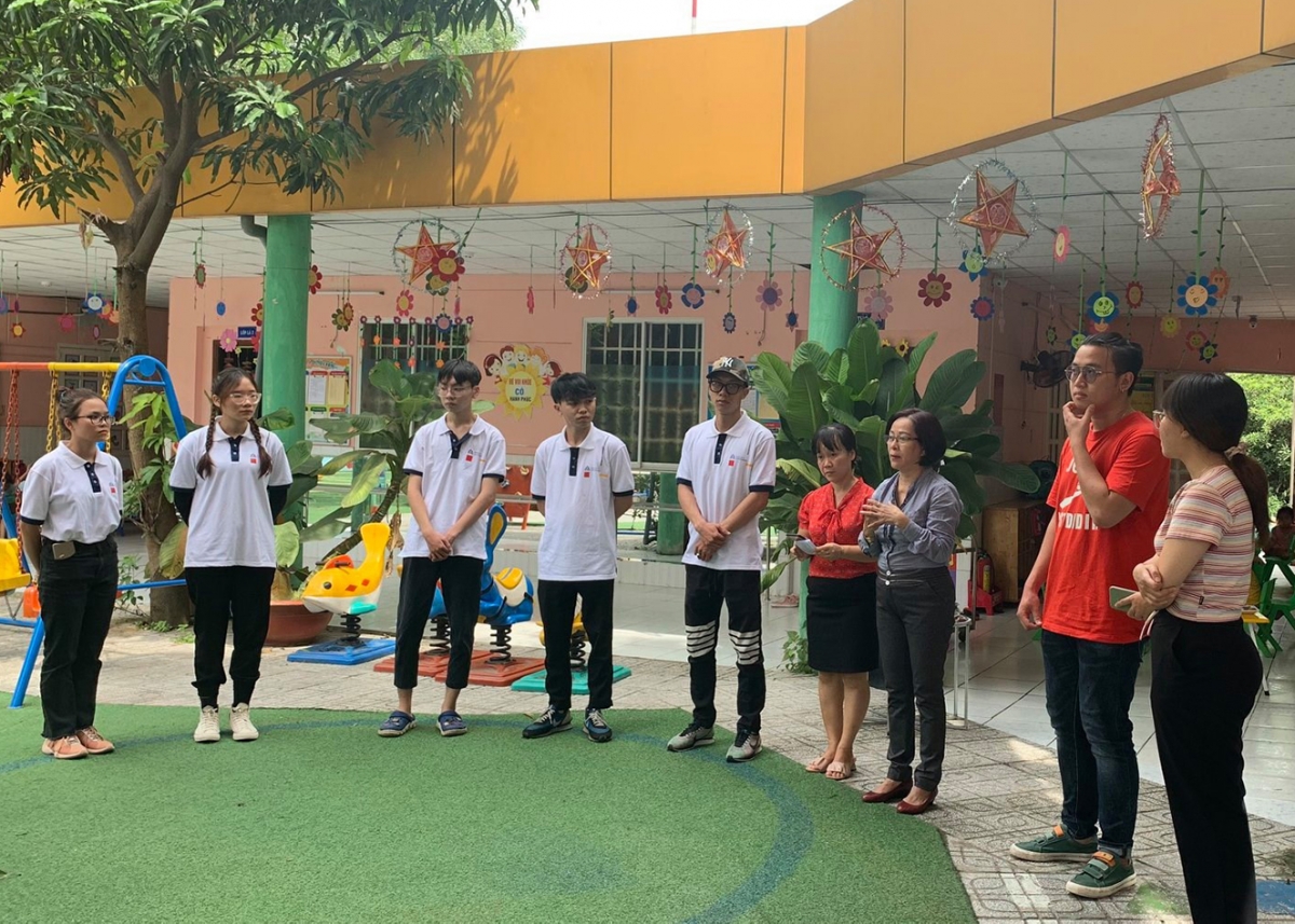 Nhóm sinh viên tham gia hoạt động Service-Learning giao lưu với giáo viên của trường mầm non Thảo Hiền (Bình Dương)