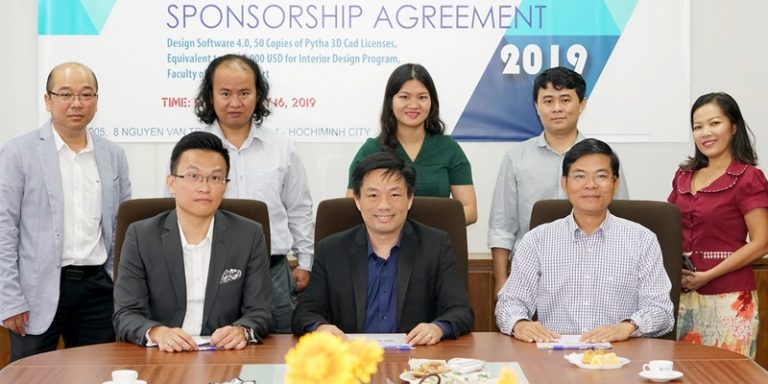 Ngày 16/7/2019, tại trụ sở chính Nguyễn Văn Tráng, Trường Đại học Hoa Sen tổ chức lễ ký kết hợp tác với Công ty Vetta và Công ty Pytha 3D-Cad của Đức. Về phía trường Đại học Hoa Sen, tham dự sự kiện gồm có: TS. Vũ Tường Thụy – Phó Hiệu trưởng, ThS. KTS. Từ Phú Đức – Q. Trưởng Khoa Thiết kế và Nghệ thuật, TS. KTS. Trần Minh Đức – Trưởng Bộ môn cùng các giảng viên ngành Thiết kế Nội thất. Từ phải qua: TS. Vũ Tường Thụy, ThS. KTS. Từ Phú Đức và TS. KTS. Trần Minh Đức. Về phía Công ty Vetta và Pytha 3D-Cad gồm có: Ông Zac...