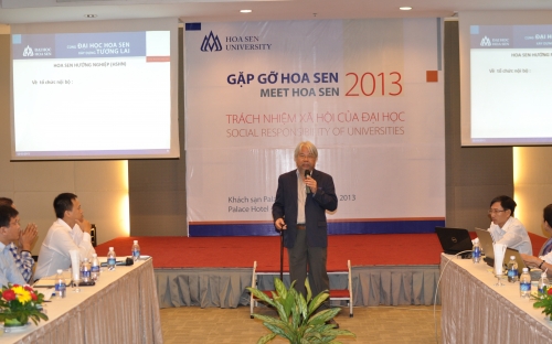 Le 2 mars 2013, l’Université Hoa Sen a organisé sa rencontre annuelle entre collègues et amis à l’hôtel Palace. La direction et les responsables des départements de l’Université ont en outre chaleureusement accueilli 24 invités, compagnons de route de l’université depuis plusieurs années. Parmi eux soulignons la présence des professeurs Phạm Văn Thuyết, Lê Vinh Quốc, Lưu Tiến Hiệp, Đặng Quan Đức, mesdames Vũ Thị Phương Anh, Ngô Thị Phương Thiện, Nguyễn Thanh Thu Thủy, messieurs Nguyễn Sơn Hà, Lê Nguyễn Hồng Phương, et bien d’autres chercheurs et spécialistes. Le thème de cette rencontre portait sur la « responsabilité sociale...