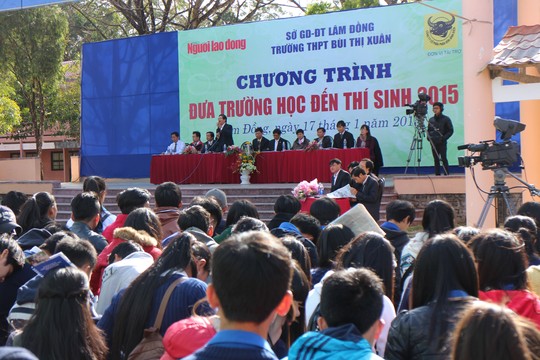 Ngày 17/01/2015, Chương trình Đưa trường học đến thí sinh 2015” tại Đà Lạt được Đài Phát thanh – Truyền hình Lâm Đồng được tường thuật trực tiếp, với sự góp mặt của ban tư vấn hùng hậu, giàu kinh nghiệm, sự tham gia của 1.5000 thí sinh. Trong chương trình, ban tư vấn sẽ trả lời thắc mắc của thí sinh về kỳ thi quốc gia, việc tuyển sinh các trường, các ngành, định hướng nghề nghiệp, khám phá bản thân thích hợp với ngành, nghề nào, bí quyết ôn thi…. Hơn 1500 học sinh THPT các trường có...
