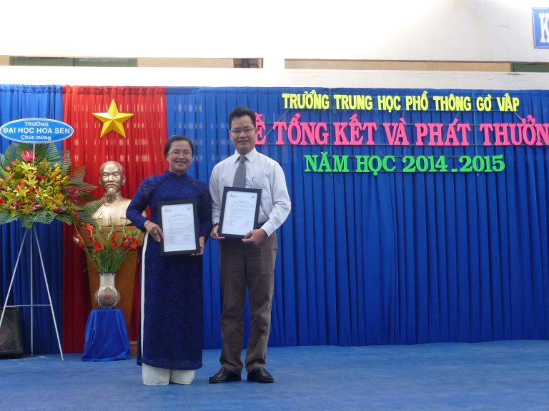 Sáng 27/5, Trong khuôn khổ Lễ Tổng kết năm học 2014-2015 tại trường THPT Gò Vấp (90A Nguyễn Thái Sơn, quận Gò Vấp, TPHCM), trường ĐH Hoa Sen và trường THPT Gò Vấp đã chính thức ký kết Biên bản ghi nhớ Kết nghĩa và Hợp tác giáo dục. Theo đó, hai bên cam kết hỗ trợ lẫn nhau nhằm nâng cao chất lượng dạy và học, đẩy mạnh công tác hướng nghiệp, phối hợp thực hiện các chương trình văn nghệ, thể thao, các hoạt động xã hội, trải nghiệm kỹ năng sống, kết nối và phục vụ cộng...